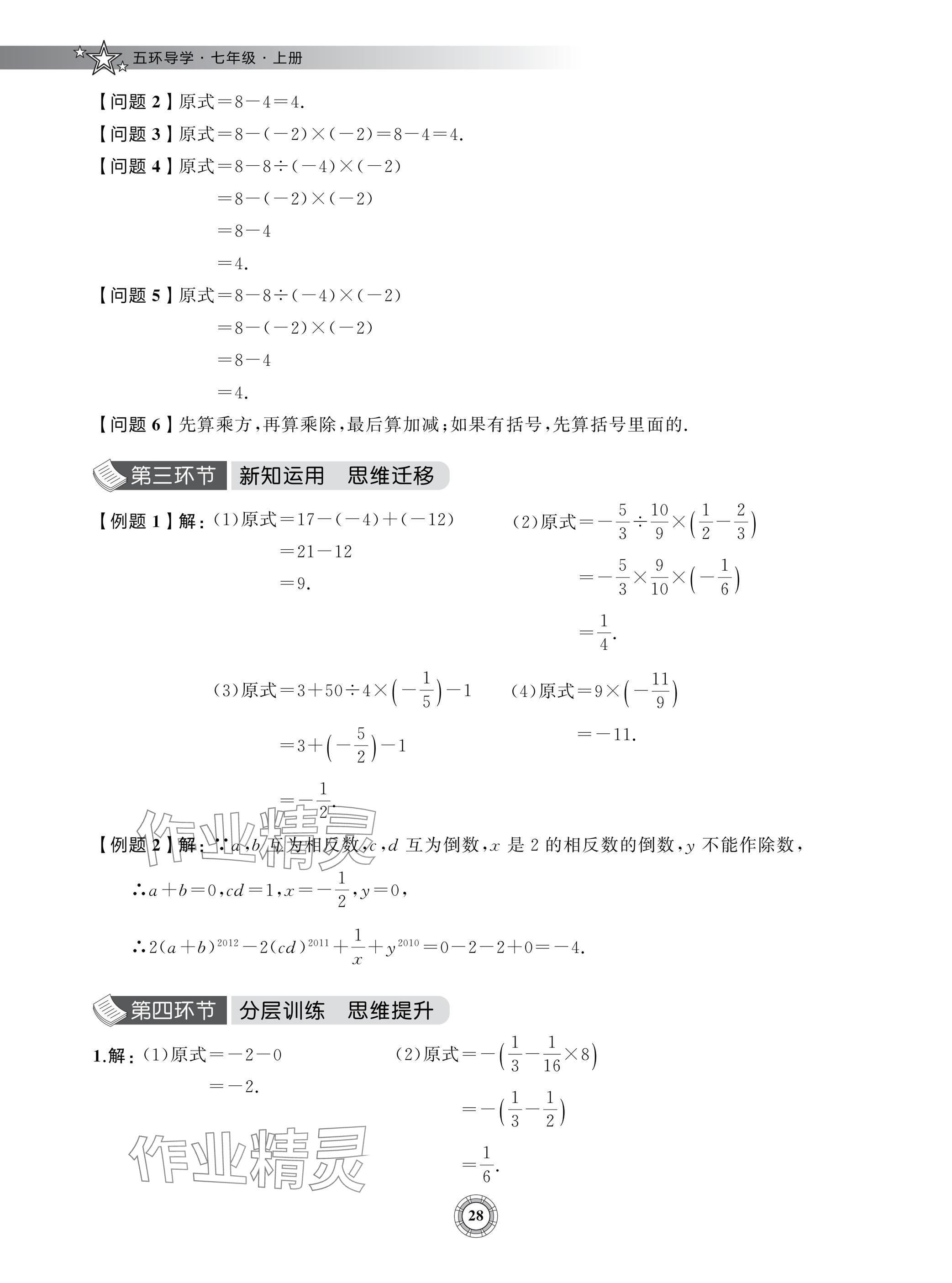注:目前有些书本章节名称可能整理的还不是很完善,但都是按照顺序排列的,请同学们按照顺序仔细查找。练习册 2024年五环导学七年级数学上册北师大版 答案主要是用来给同学们做完题方便对答案用的,请勿直接抄袭。
