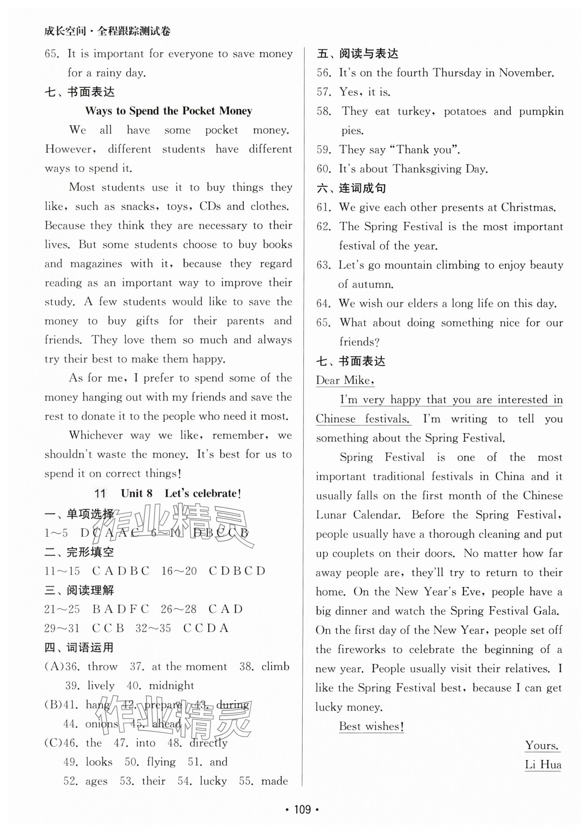 注:目前有些书本章节名称可能整理的还不是很完善,但都是按照顺序排列的,请同学们按照顺序仔细查找。练习册 2024年成长空间全程跟踪测试卷七年级英语上册译林版 答案主要是用来给同学们做完题方便对答案用的,请勿直接抄袭。