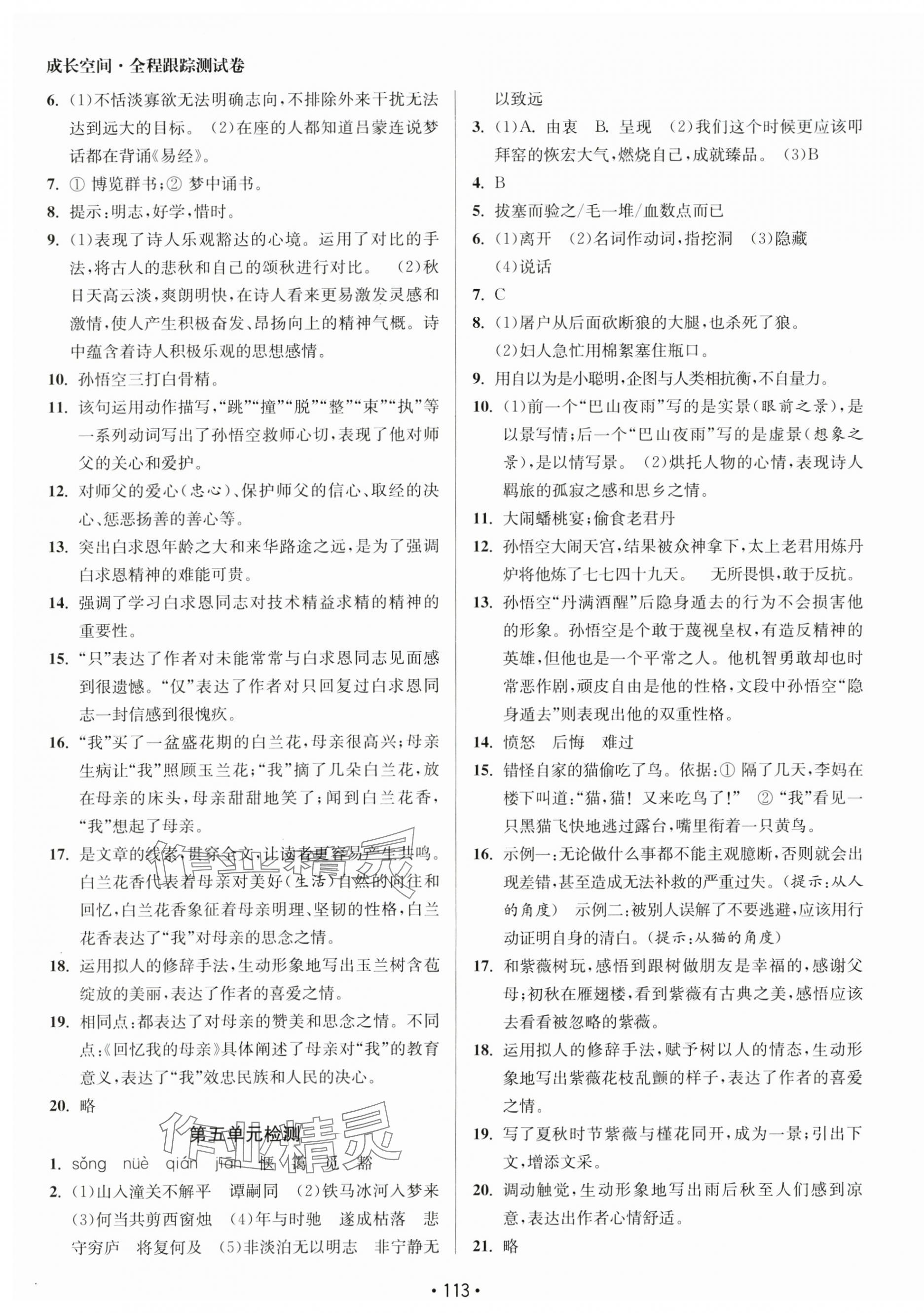 注:目前有些书本章节名称可能整理的还不是很完善,但都是按照顺序排列的,请同学们按照顺序仔细查找。练习册 2024年成长空间全程跟踪测试卷七年级语文上册人教版 答案主要是用来给同学们做完题方便对答案用的,请勿直接抄袭。