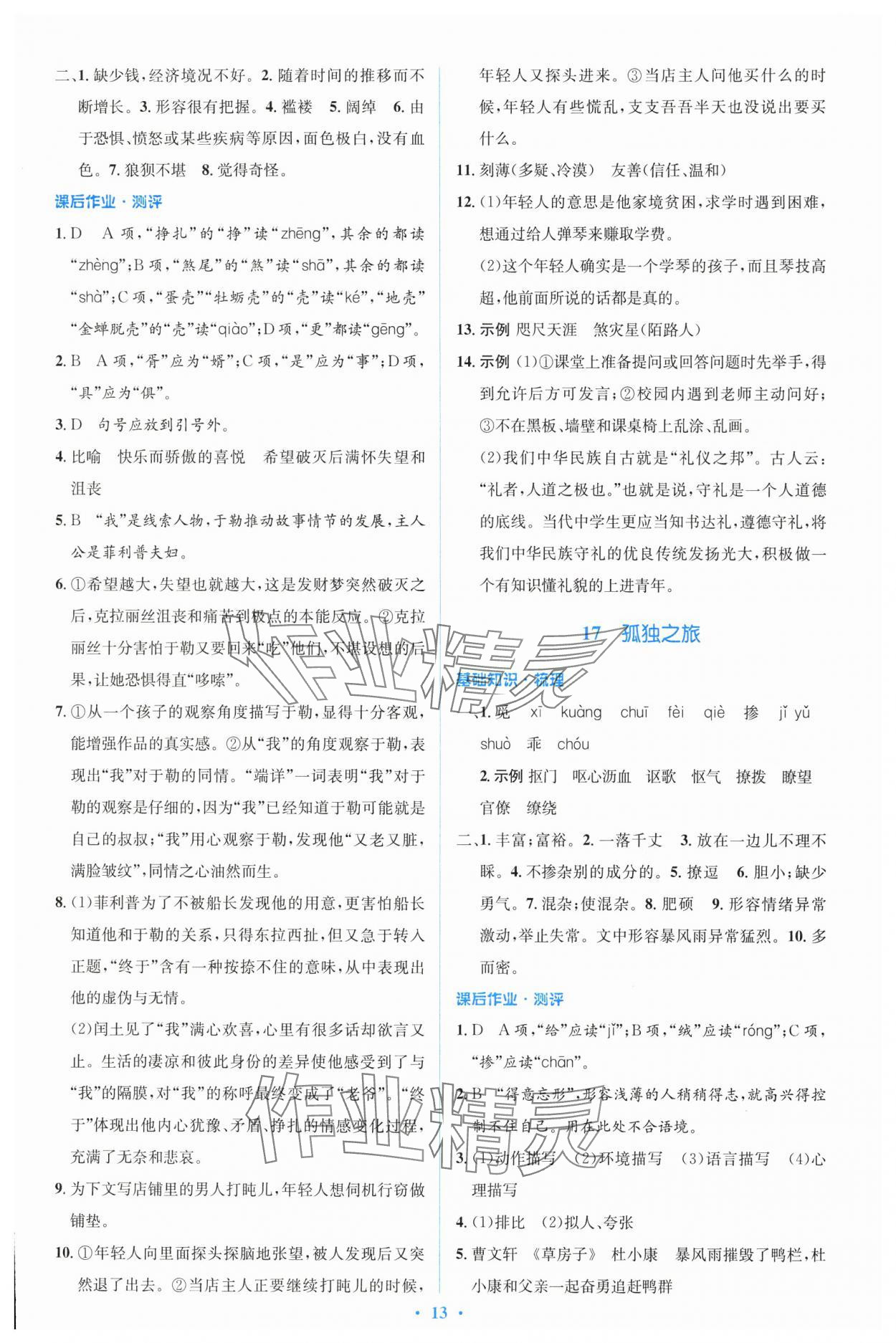 注:目前有些书本章节名称可能整理的还不是很完善,但都是按照顺序排列的,请同学们按照顺序仔细查找。练习册 2024年同步解析与测评学考练九年级语文上册人教版精编版 答案主要是用来给同学们做完题方便对答案用的,请勿直接抄袭。