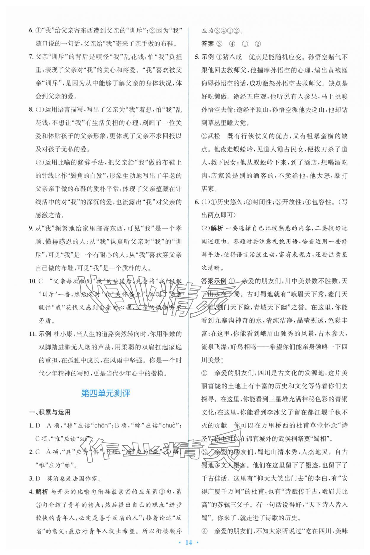 注:目前有些书本章节名称可能整理的还不是很完善,但都是按照顺序排列的,请同学们按照顺序仔细查找。练习册 2024年同步解析与测评学考练九年级语文上册人教版精编版 答案主要是用来给同学们做完题方便对答案用的,请勿直接抄袭。