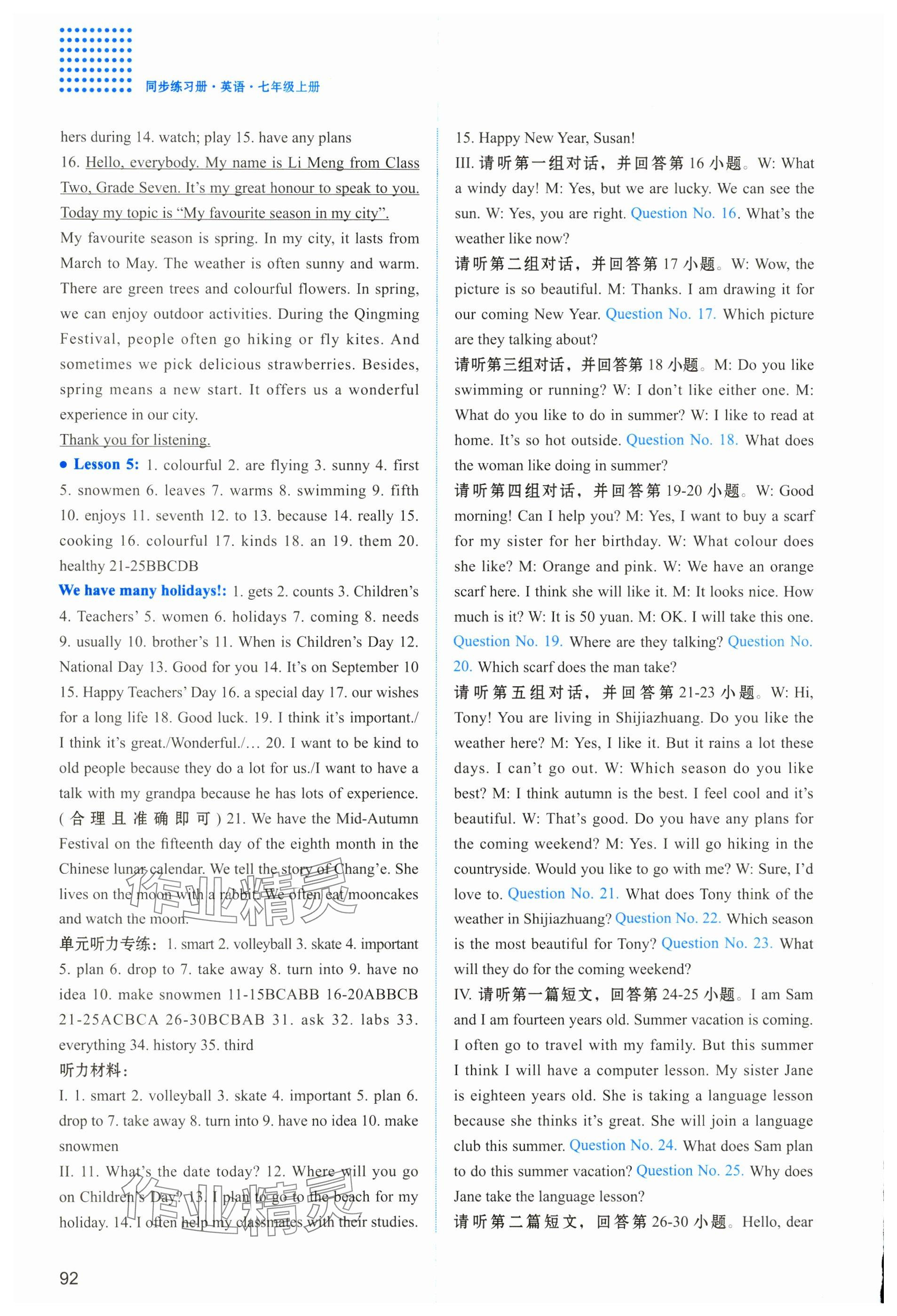 注:目前有些书本章节名称可能整理的还不是很完善,但都是按照顺序排列的,请同学们按照顺序仔细查找。练习册 2024年同步练习册河北教育出版社七年级英语上册冀教版 答案主要是用来给同学们做完题方便对答案用的,请勿直接抄袭。