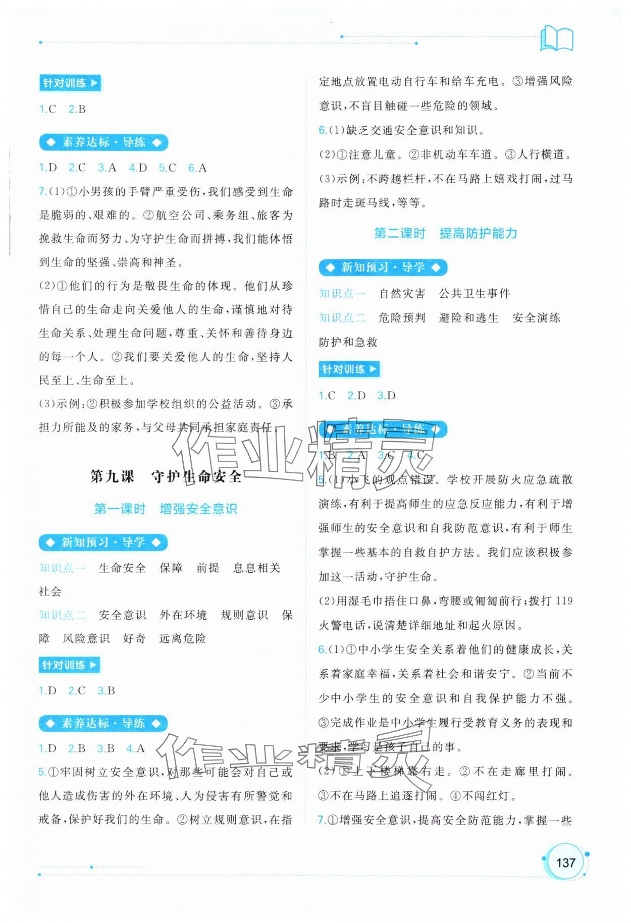 注:目前有些书本章节名称可能整理的还不是很完善,但都是按照顺序排列的,请同学们按照顺序仔细查找。练习册 2024年新课程学习与测评同步学习七年级道德与法治上册人教版 答案主要是用来给同学们做完题方便对答案用的,请勿直接抄袭。