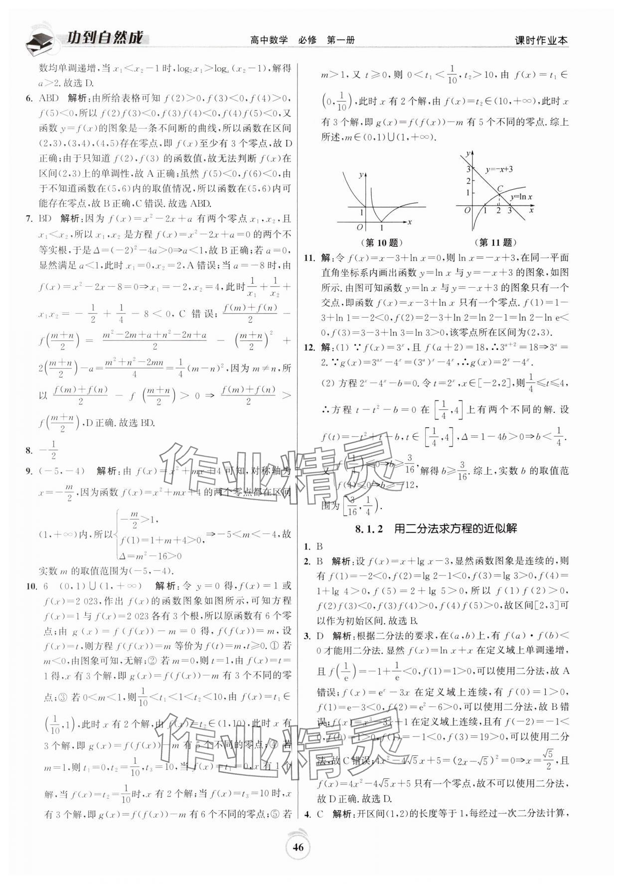 注:目前有些书本章节名称可能整理的还不是很完善,但都是按照顺序排列的,请同学们按照顺序仔细查找。练习册 2024年功到自然成课时作业本高中数学必修第一册 答案主要是用来给同学们做完题方便对答案用的,请勿直接抄袭。