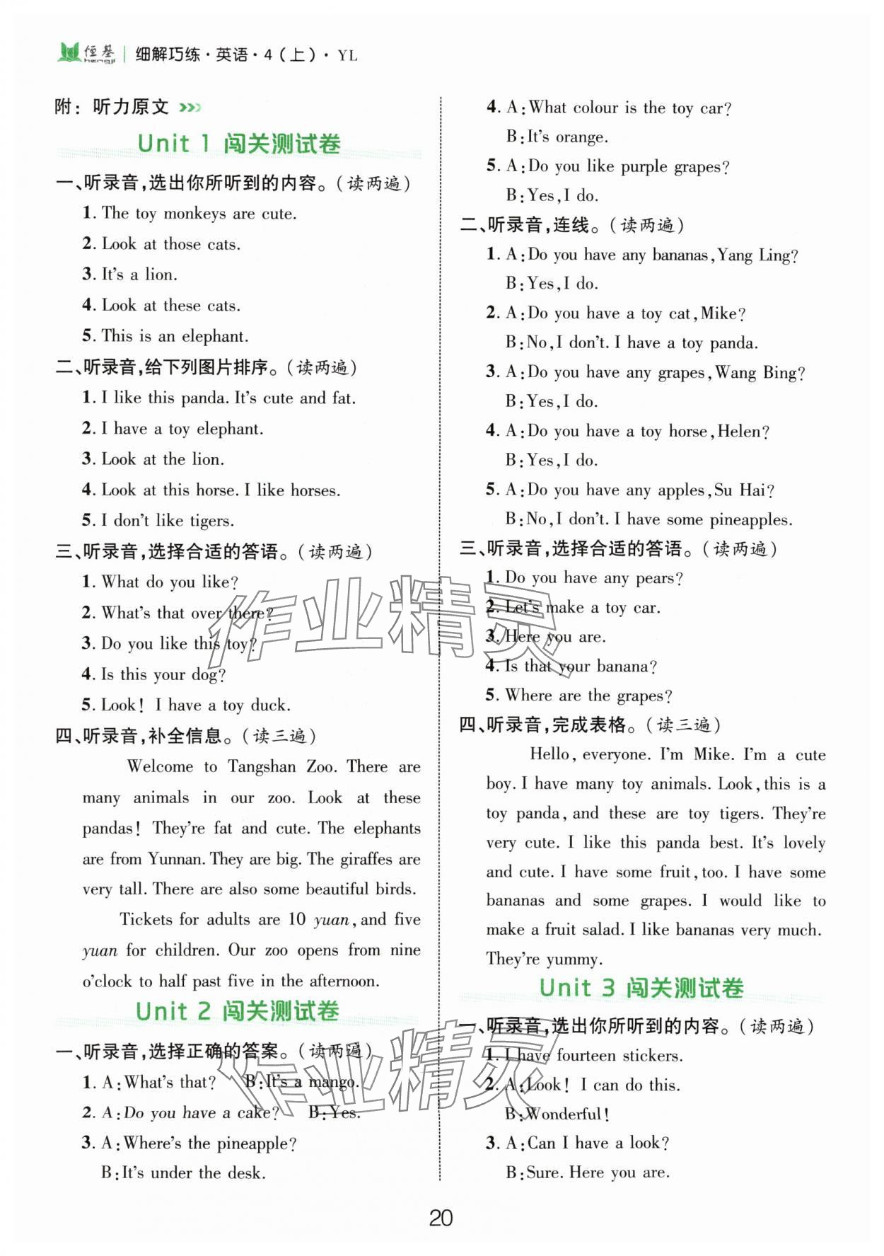 注:目前有些书本章节名称可能整理的还不是很完善,但都是按照顺序排列的,请同学们按照顺序仔细查找。练习册 2024年细解巧练四年级英语上册译林版 答案主要是用来给同学们做完题方便对答案用的,请勿直接抄袭。