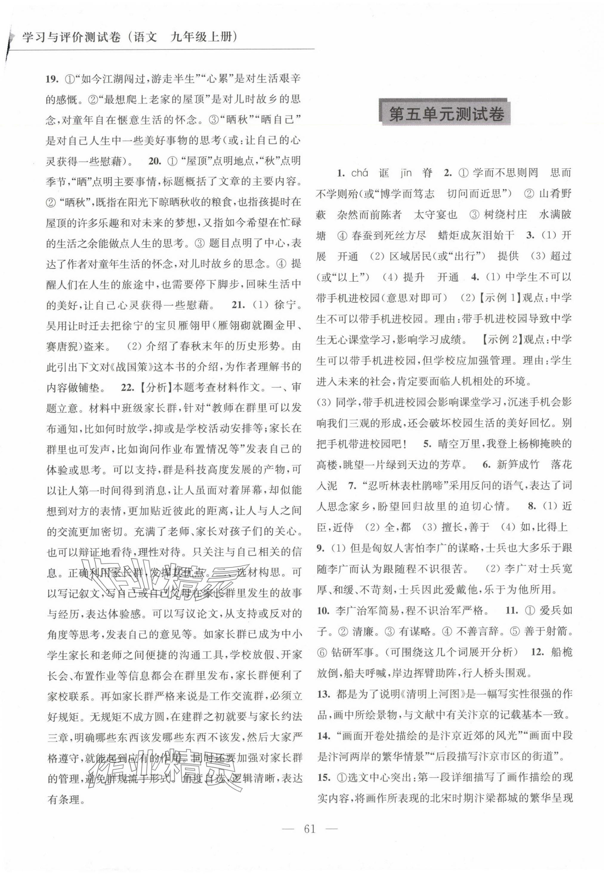 注:目前有些书本章节名称可能整理的还不是很完善,但都是按照顺序排列的,请同学们按照顺序仔细查找。练习册 2024年学习与评价测试卷九年级语文上册人教版 答案主要是用来给同学们做完题方便对答案用的,请勿直接抄袭。