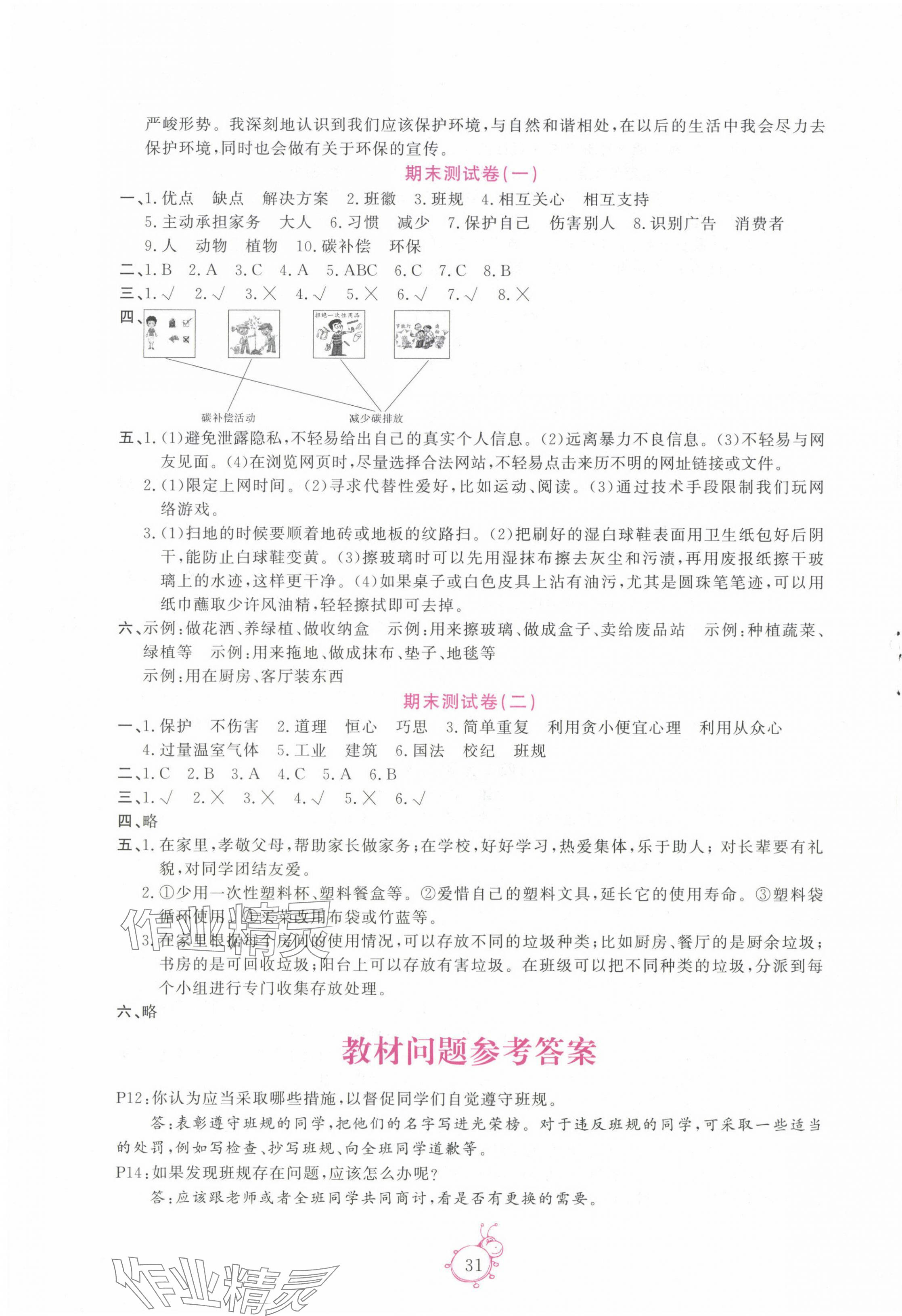 2024年激活思维阳光出版社四年级道德与法治上册人教版