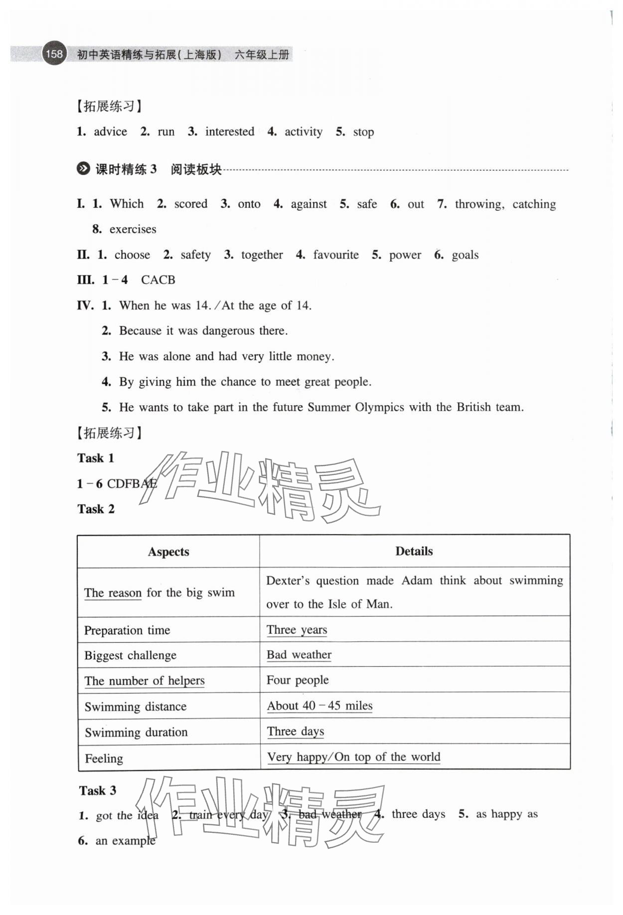 注:目前有些书本章节名称可能整理的还不是很完善,但都是按照顺序排列的,请同学们按照顺序仔细查找。练习册 2024年初中英语精练与拓展六年级上册沪教版五四制 答案主要是用来给同学们做完题方便对答案用的,请勿直接抄袭。