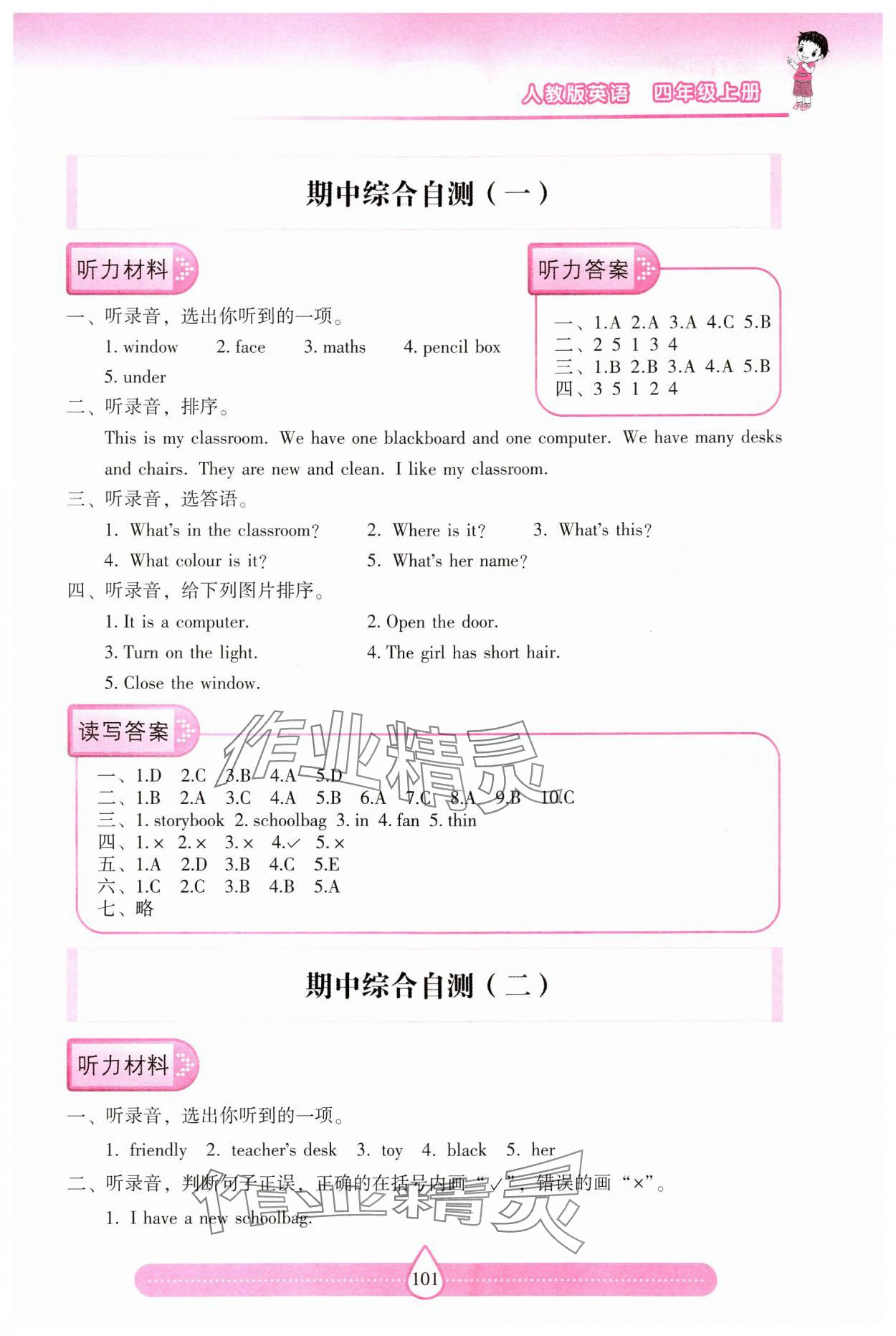 注:目前有些书本章节名称可能整理的还不是很完善,但都是按照顺序排列的,请同学们按照顺序仔细查找。练习册 2024年新课标两导两练高效学案四年级英语上册人教版 答案主要是用来给同学们做完题方便对答案用的,请勿直接抄袭。