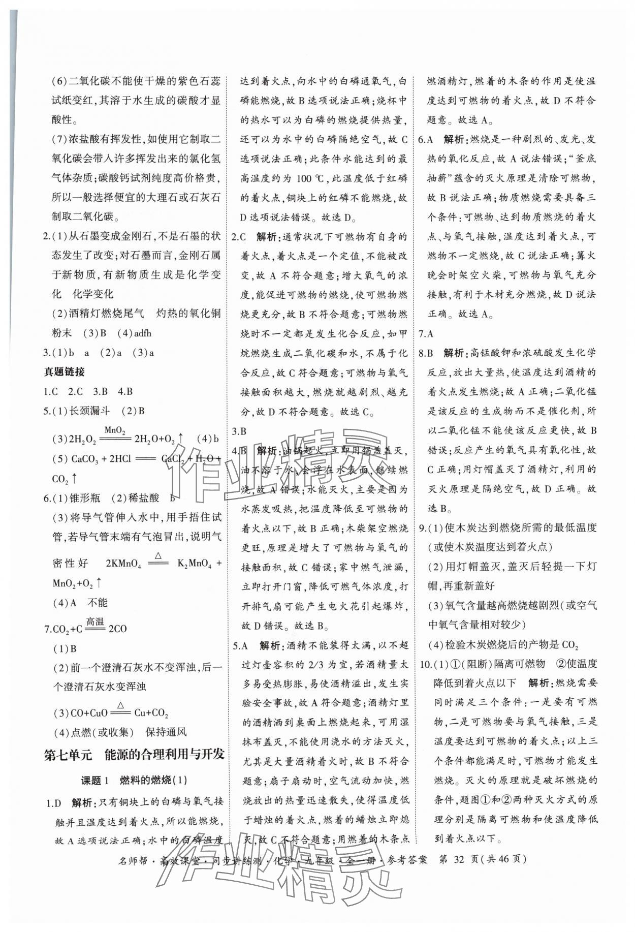 注:目前有些书本章节名称可能整理的还不是很完善,但都是按照顺序排列的,请同学们按照顺序仔细查找。练习册 2024年名师帮高效课堂同步讲练测九年级化学全一册人教版 答案主要是用来给同学们做完题方便对答案用的,请勿直接抄袭。