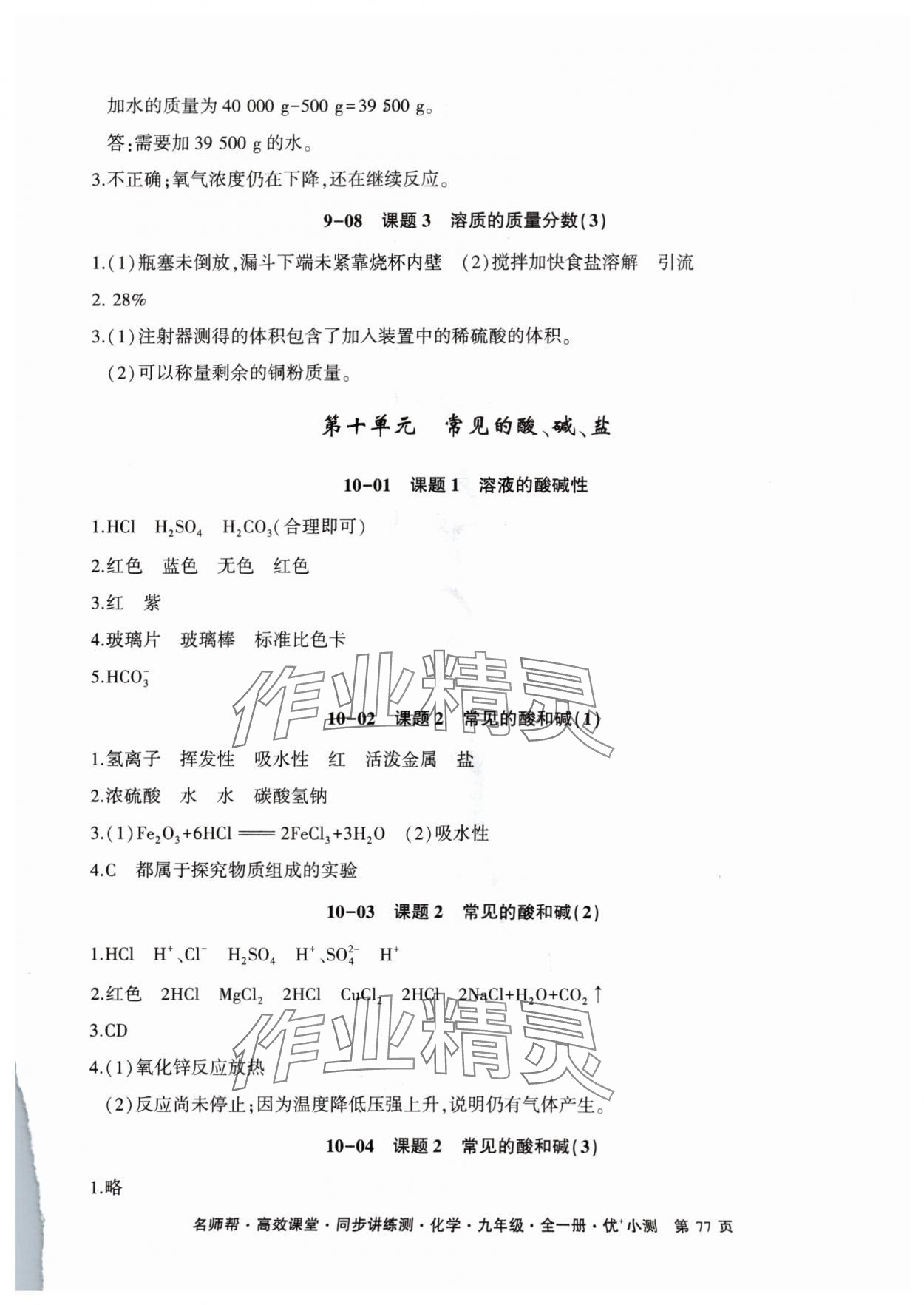 注:目前有些书本章节名称可能整理的还不是很完善,但都是按照顺序排列的,请同学们按照顺序仔细查找。练习册 2024年名师帮高效课堂同步讲练测九年级化学全一册人教版 答案主要是用来给同学们做完题方便对答案用的,请勿直接抄袭。