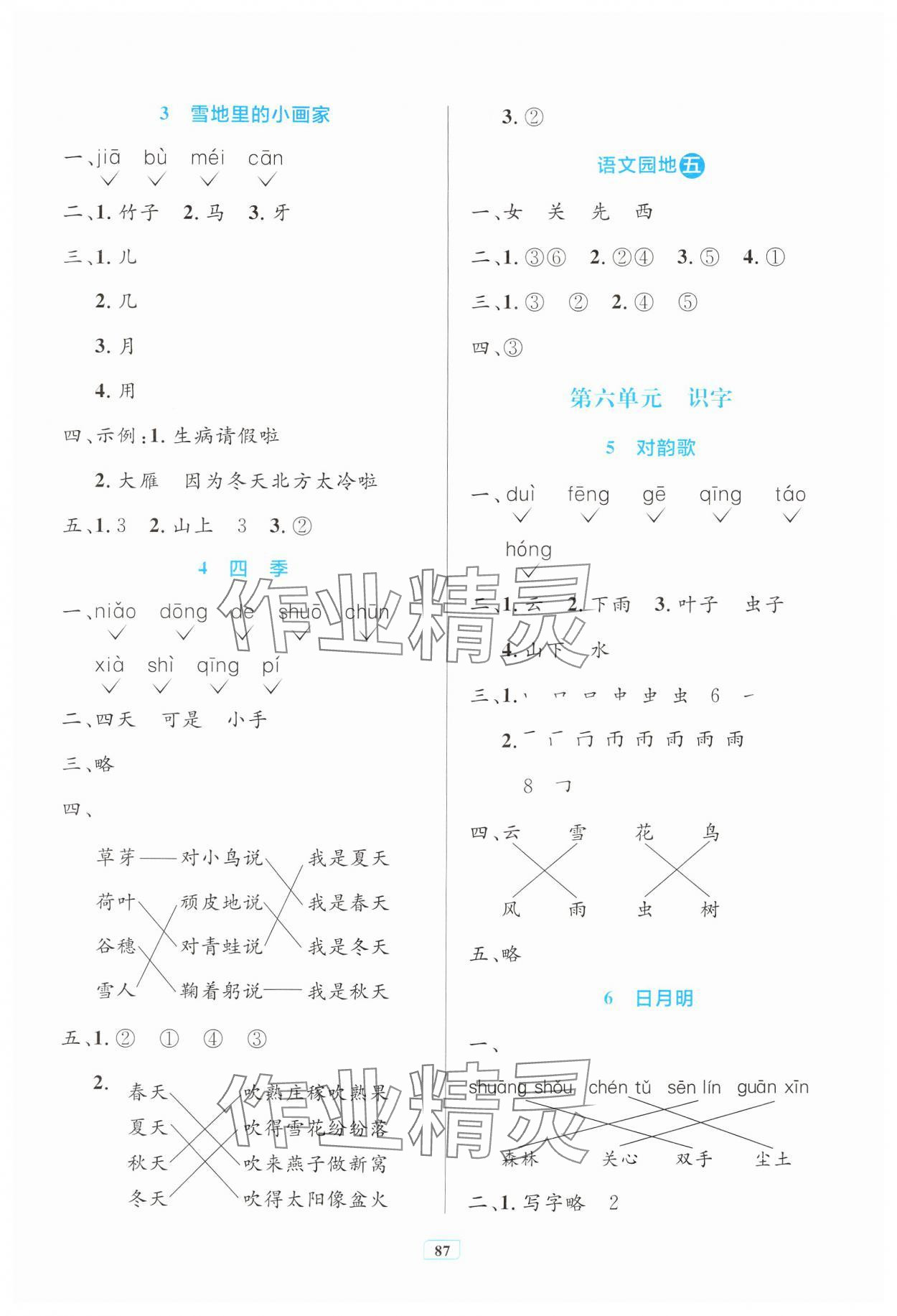 注:目前有些书本章节名称可能整理的还不是很完善,但都是按照顺序排列的,请同学们按照顺序仔细查找。练习册 2024年同步学习目标与检测一年级语文上册人教版 答案主要是用来给同学们做完题方便对答案用的,请勿直接抄袭。