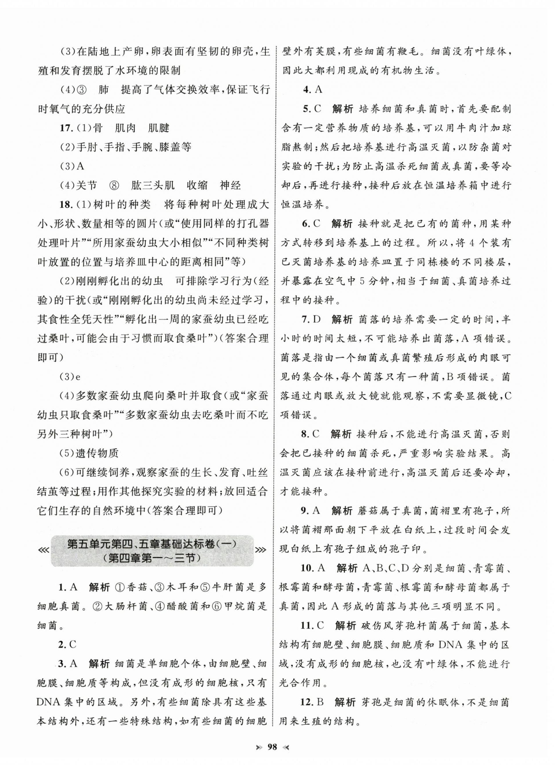 注:目前有些书本章节名称可能整理的还不是很完善,但都是按照顺序排列的,请同学们按照顺序仔细查找。练习册 2024年学习目标与检测同步测试卷八年级生物上册人教版 答案主要是用来给同学们做完题方便对答案用的,请勿直接抄袭。