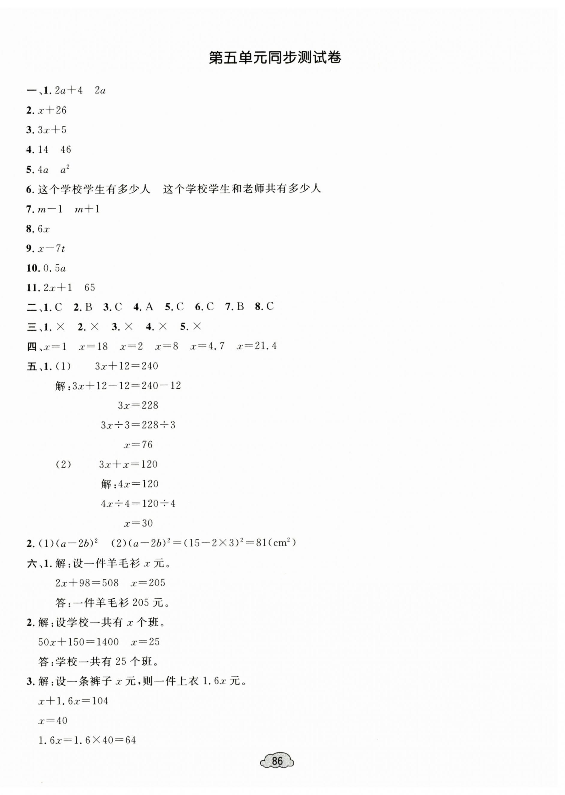 注:目前有些书本章节名称可能整理的还不是很完善,但都是按照顺序排列的,请同学们按照顺序仔细查找。练习册 2024年学习目标与检测同步测试卷五年级数学上册人教版 答案主要是用来给同学们做完题方便对答案用的,请勿直接抄袭。