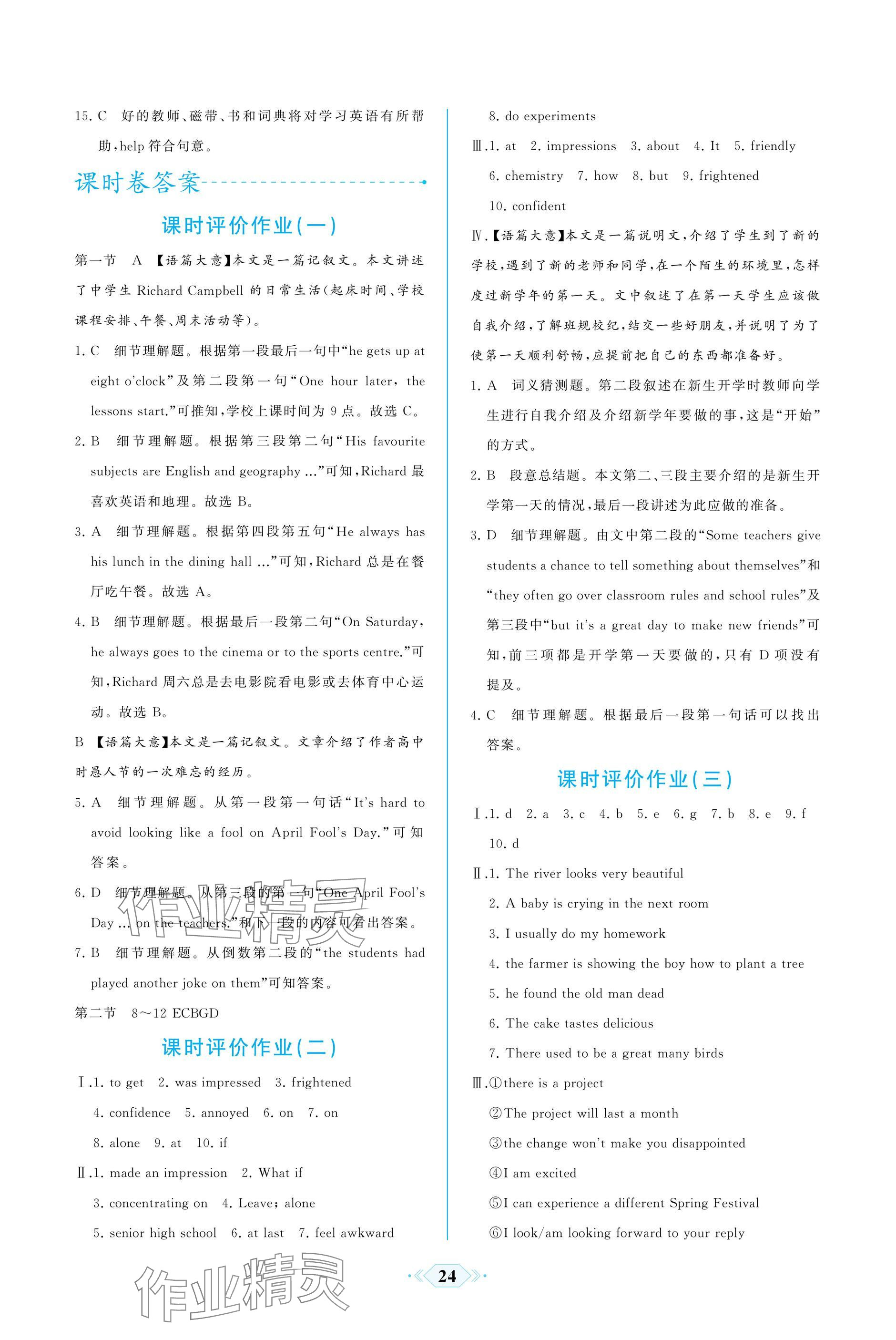 注:目前有些书本章节名称可能整理的还不是很完善,但都是按照顺序排列的,请同学们按照顺序仔细查找。练习册 2024年同步解析与测评课时练人民教育出版社高中英语必修第一册人教版增强版 答案主要是用来给同学们做完题方便对答案用的,请勿直接抄袭。