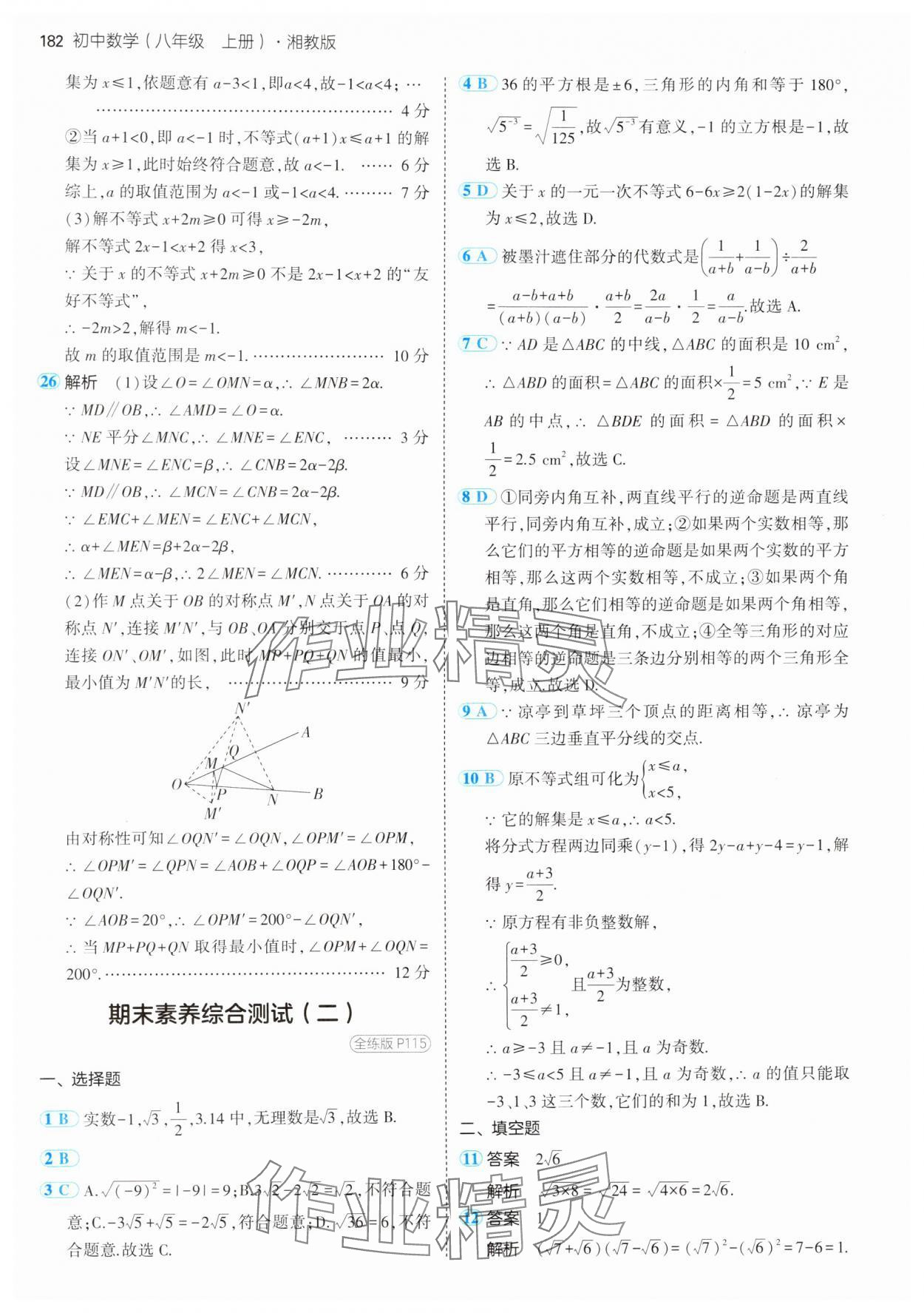 注:目前有些书本章节名称可能整理的还不是很完善,但都是按照顺序排列的,请同学们按照顺序仔细查找。练习册 2024年5年中考3年模拟初中数学八年级上册湘教版 答案主要是用来给同学们做完题方便对答案用的,请勿直接抄袭。