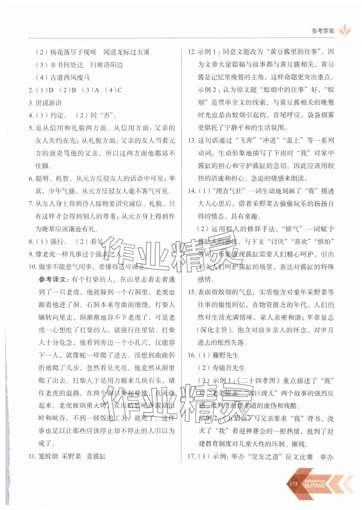注:目前有些书本章节名称可能整理的还不是很完善,但都是按照顺序排列的,请同学们按照顺序仔细查找。练习册 2024年随堂同步练习七年级语文上册人教版 答案主要是用来给同学们做完题方便对答案用的,请勿直接抄袭。