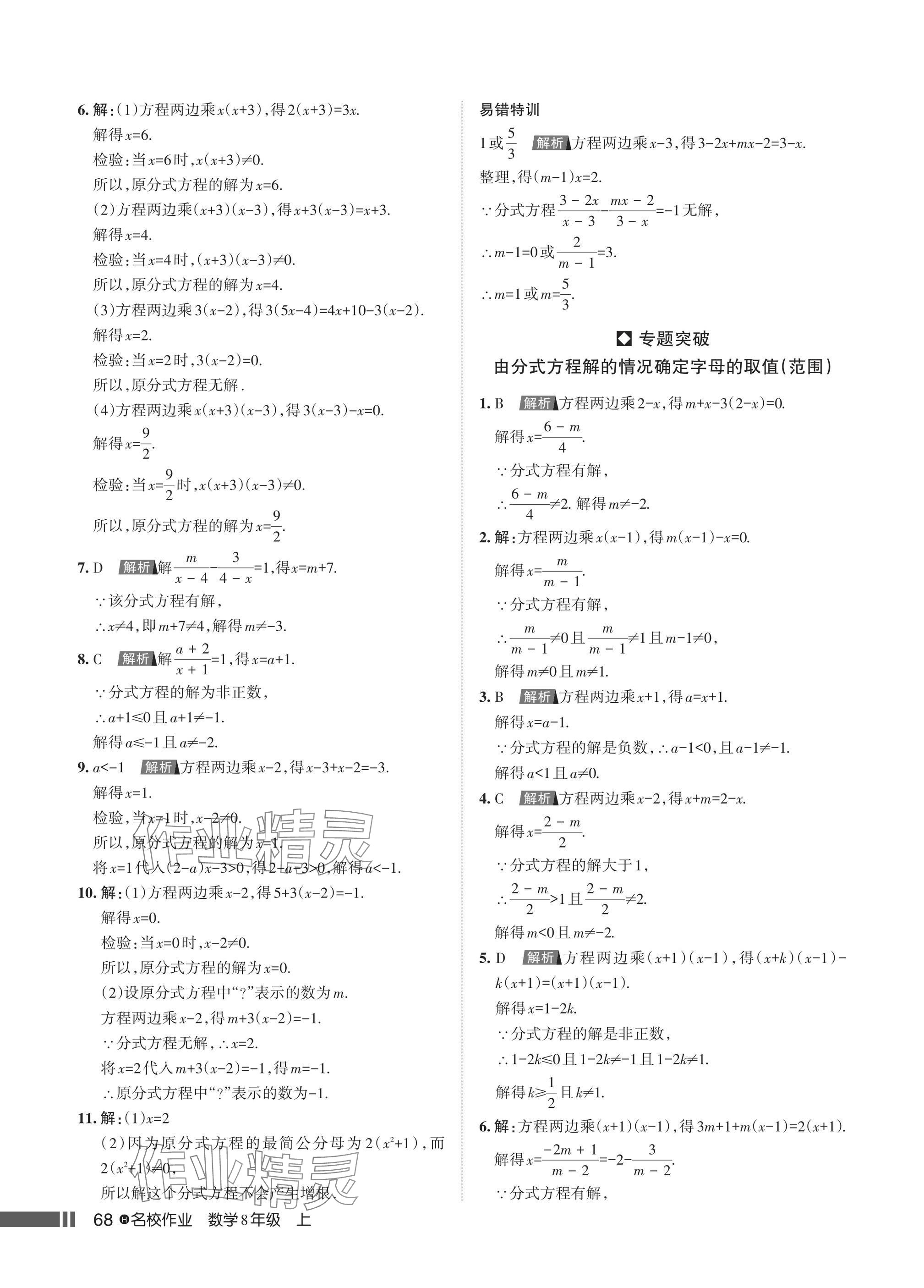 注:目前有些书本章节名称可能整理的还不是很完善,但都是按照顺序排列的,请同学们按照顺序仔细查找。练习册 2024年名校作业八年级数学上册人教版湖北专版 答案主要是用来给同学们做完题方便对答案用的,请勿直接抄袭。