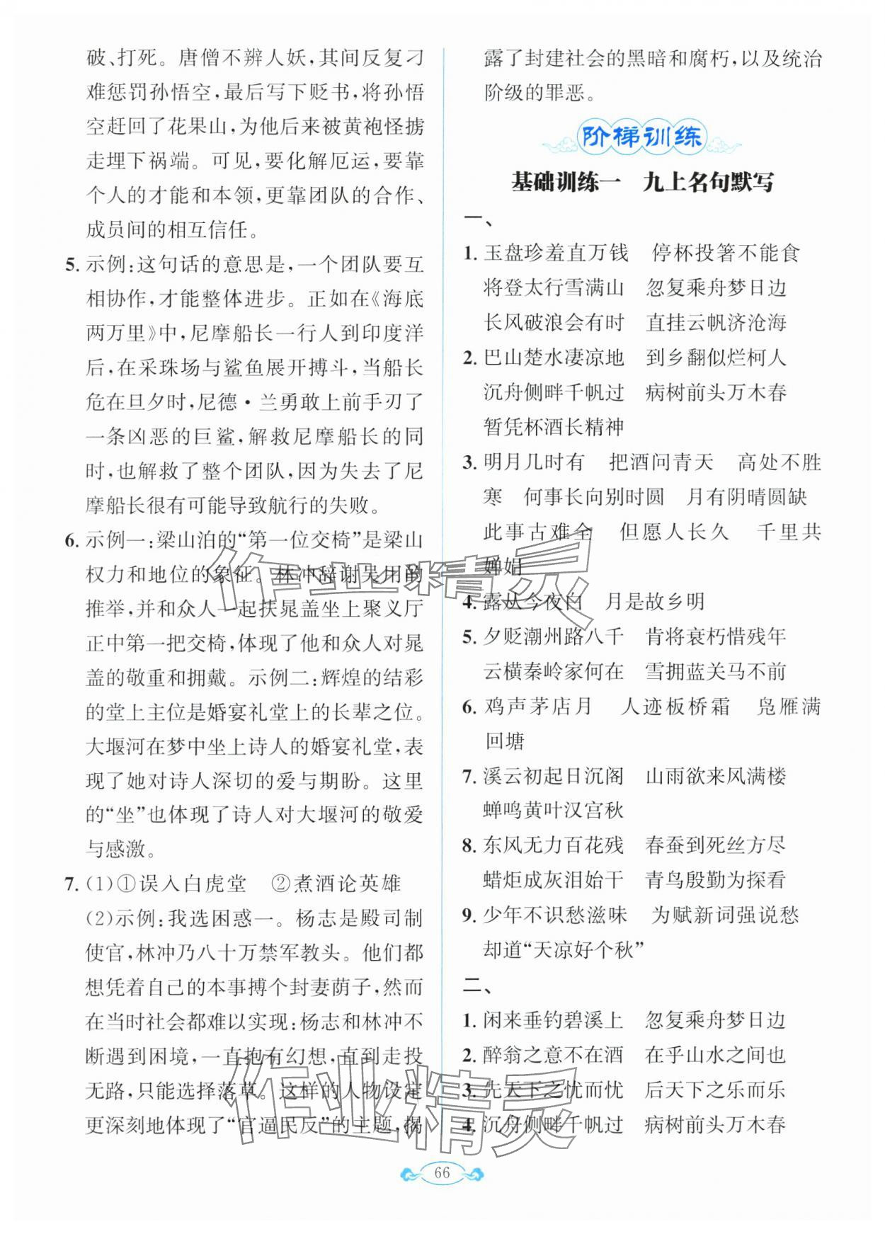 注:目前有些书本章节名称可能整理的还不是很完善,但都是按照顺序排列的,请同学们按照顺序仔细查找。练习册 2024年古诗文与名著阅读拓展训练营九年级语文全一册人教版 答案主要是用来给同学们做完题方便对答案用的,请勿直接抄袭。