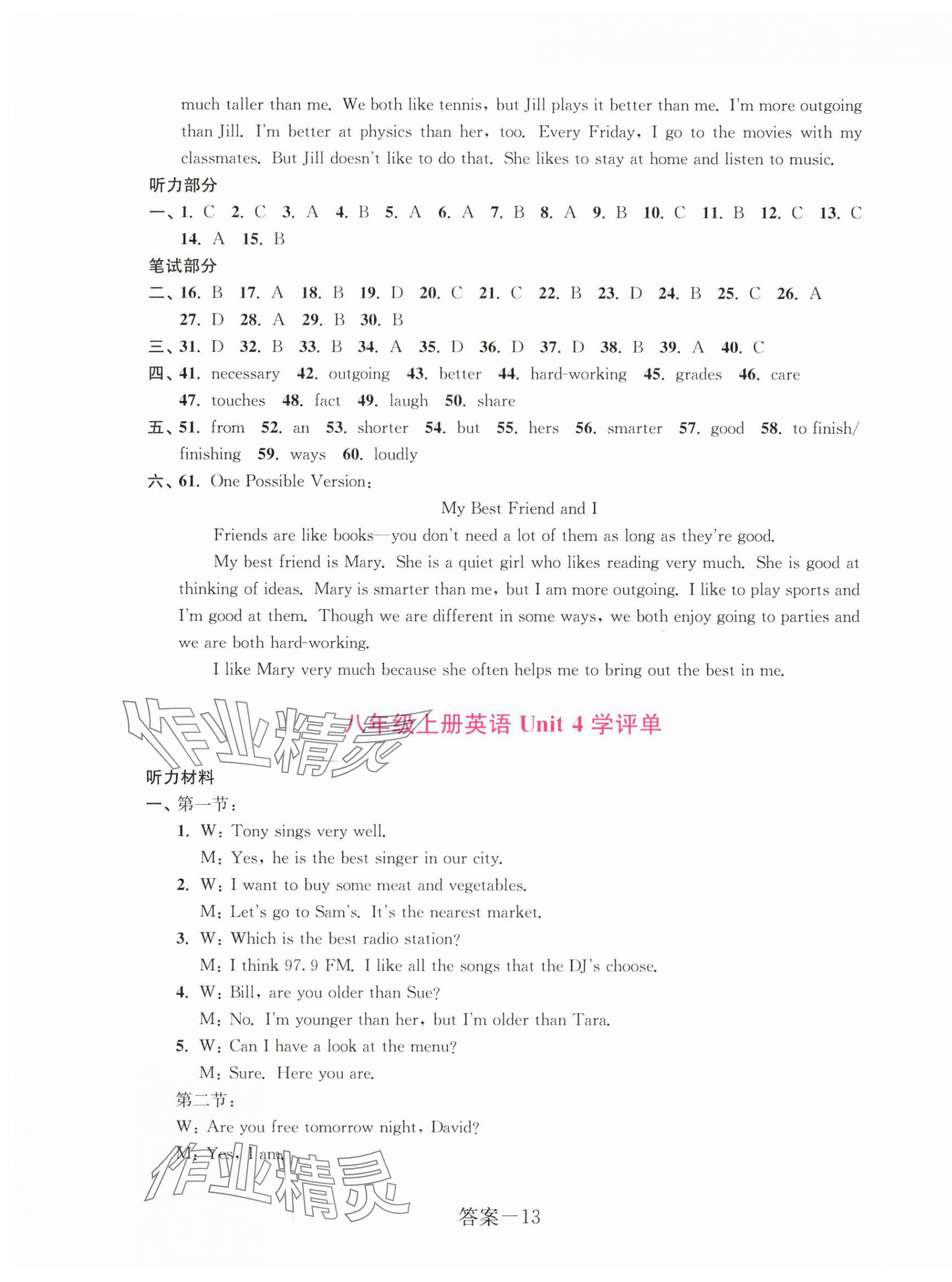 注:目前有些书本章节名称可能整理的还不是很完善,但都是按照顺序排列的,请同学们按照顺序仔细查找。练习册 2024年学评手册八年级英语上册人教版 答案主要是用来给同学们做完题方便对答案用的,请勿直接抄袭。