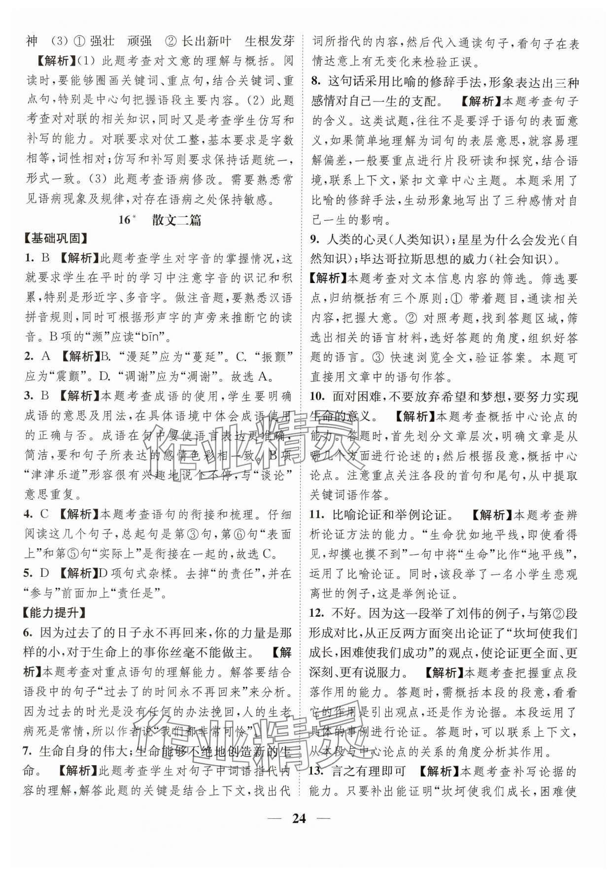 注:目前有些书本章节名称可能整理的还不是很完善,但都是按照顺序排列的,请同学们按照顺序仔细查找。练习册 2024年随堂练1加2八年级语文上册人教版 答案主要是用来给同学们做完题方便对答案用的,请勿直接抄袭。