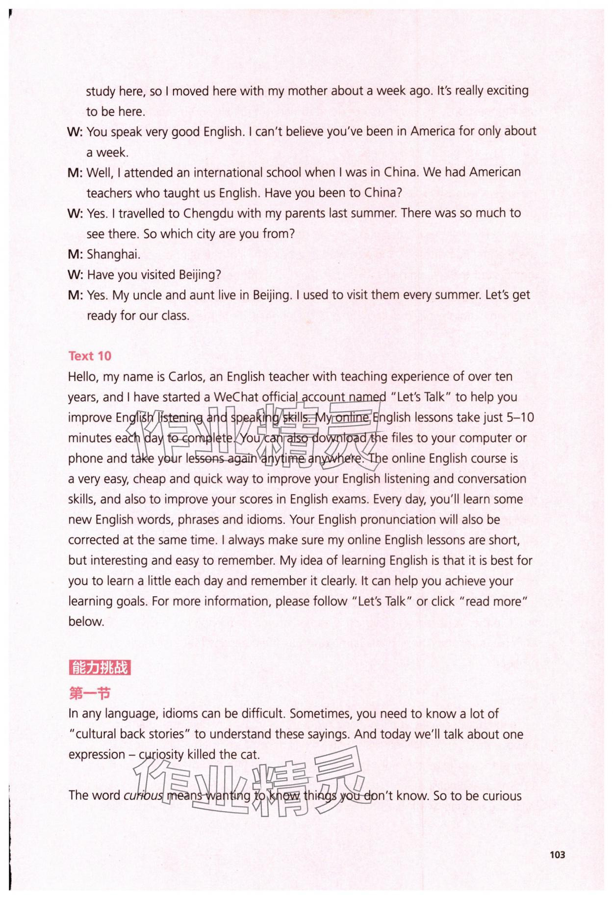 注:目前有些书本章节名称可能整理的还不是很完善,但都是按照顺序排列的,请同学们按照顺序仔细查找。练习册 2024年高中英语同步听力外语教学与研究出版社高中英语必修第一册外研版 答案主要是用来给同学们做完题方便对答案用的,请勿直接抄袭。