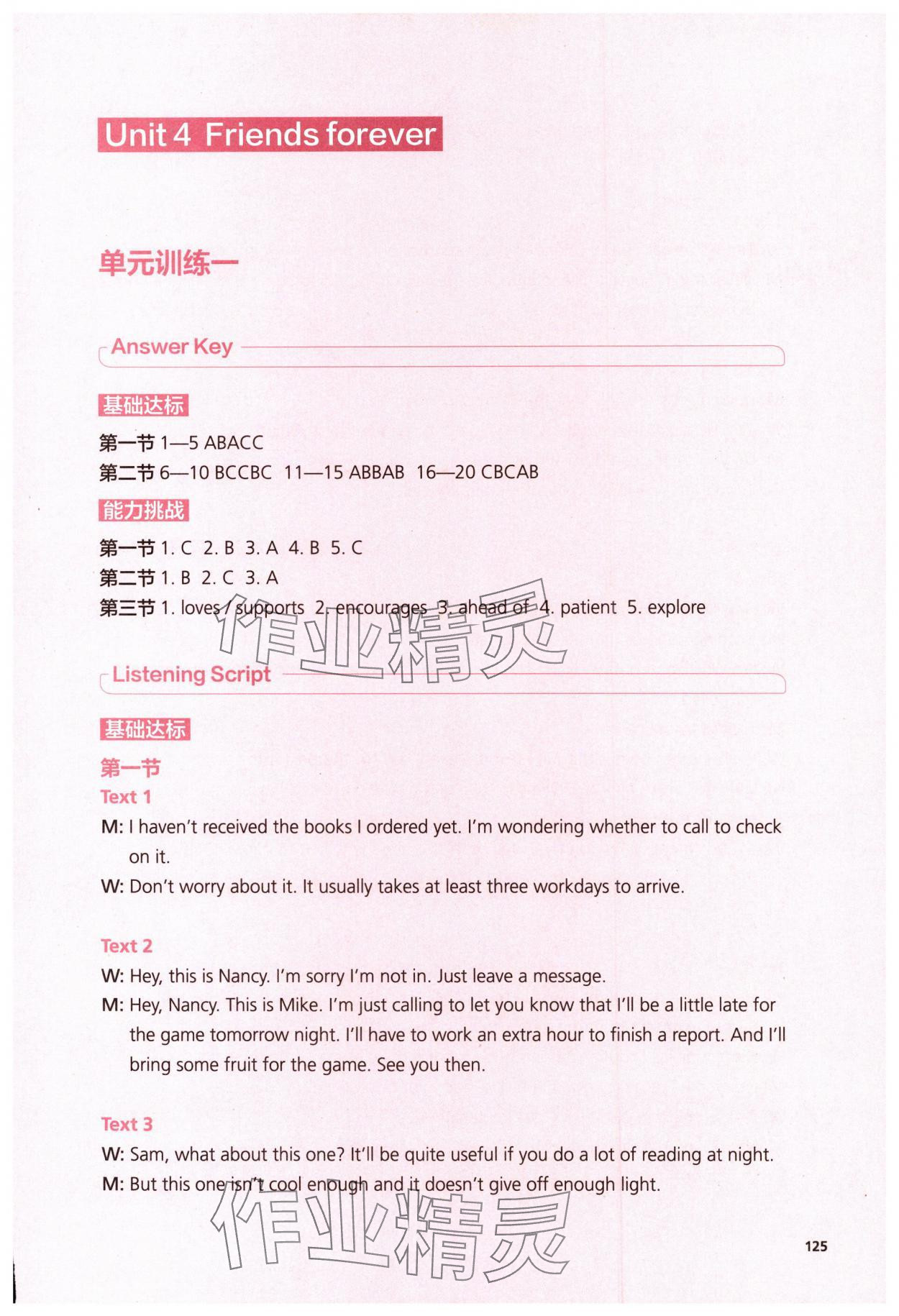 注:目前有些书本章节名称可能整理的还不是很完善,但都是按照顺序排列的,请同学们按照顺序仔细查找。练习册 2024年高中英语同步听力外语教学与研究出版社高中英语必修第一册外研版 答案主要是用来给同学们做完题方便对答案用的,请勿直接抄袭。