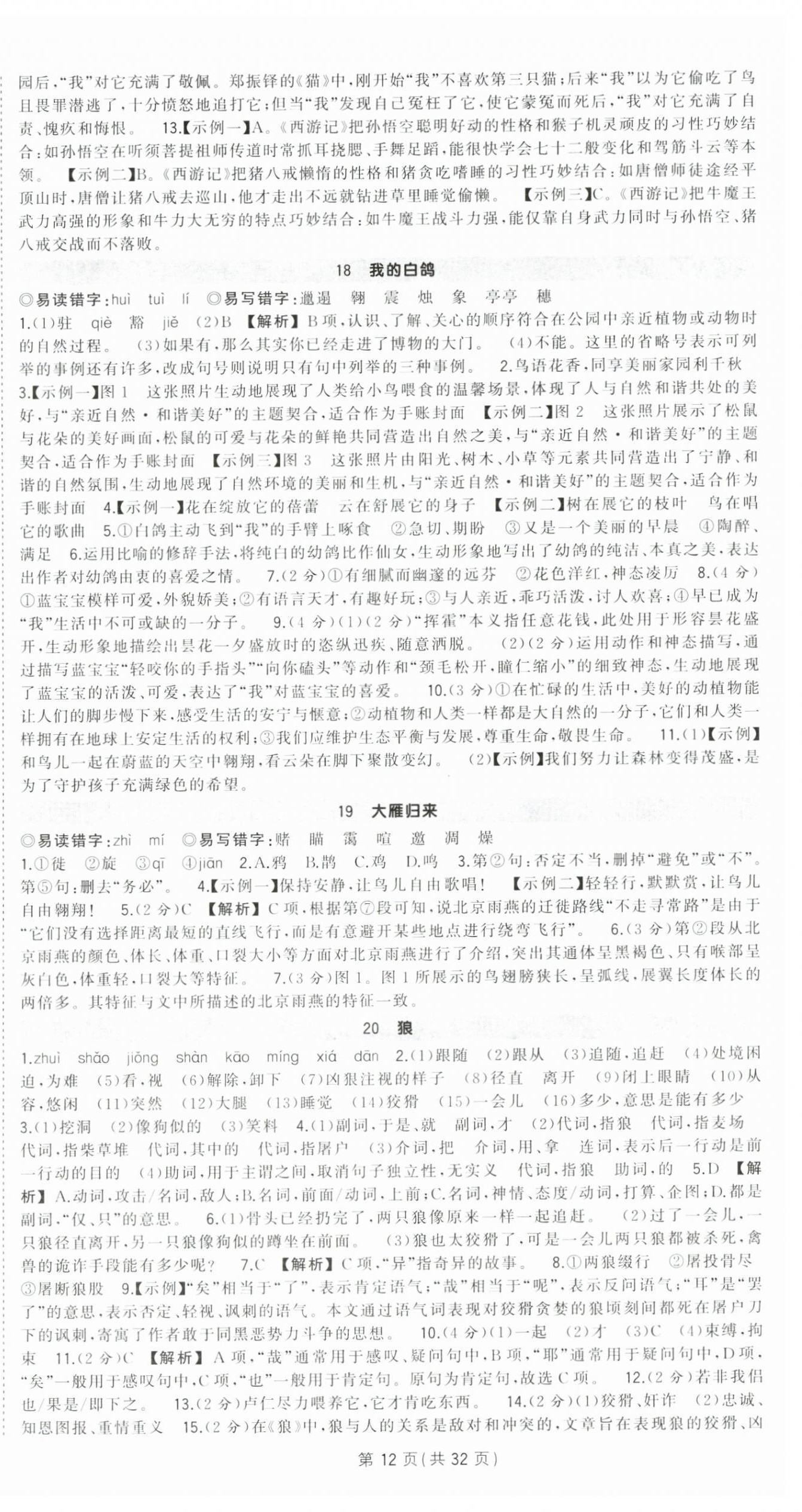 注:目前有些书本章节名称可能整理的还不是很完善,但都是按照顺序排列的,请同学们按照顺序仔细查找。练习册 2024年状元成才路创优作业七年级语文上册人教版湖北专版 答案主要是用来给同学们做完题方便对答案用的,请勿直接抄袭。