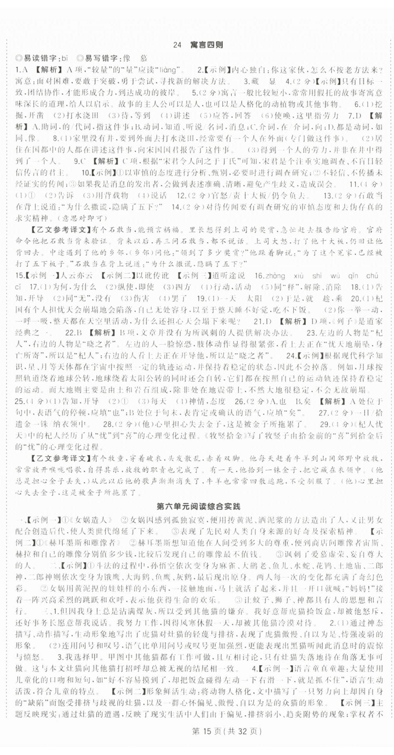 注:目前有些书本章节名称可能整理的还不是很完善,但都是按照顺序排列的,请同学们按照顺序仔细查找。练习册 2024年状元成才路创优作业七年级语文上册人教版湖北专版 答案主要是用来给同学们做完题方便对答案用的,请勿直接抄袭。