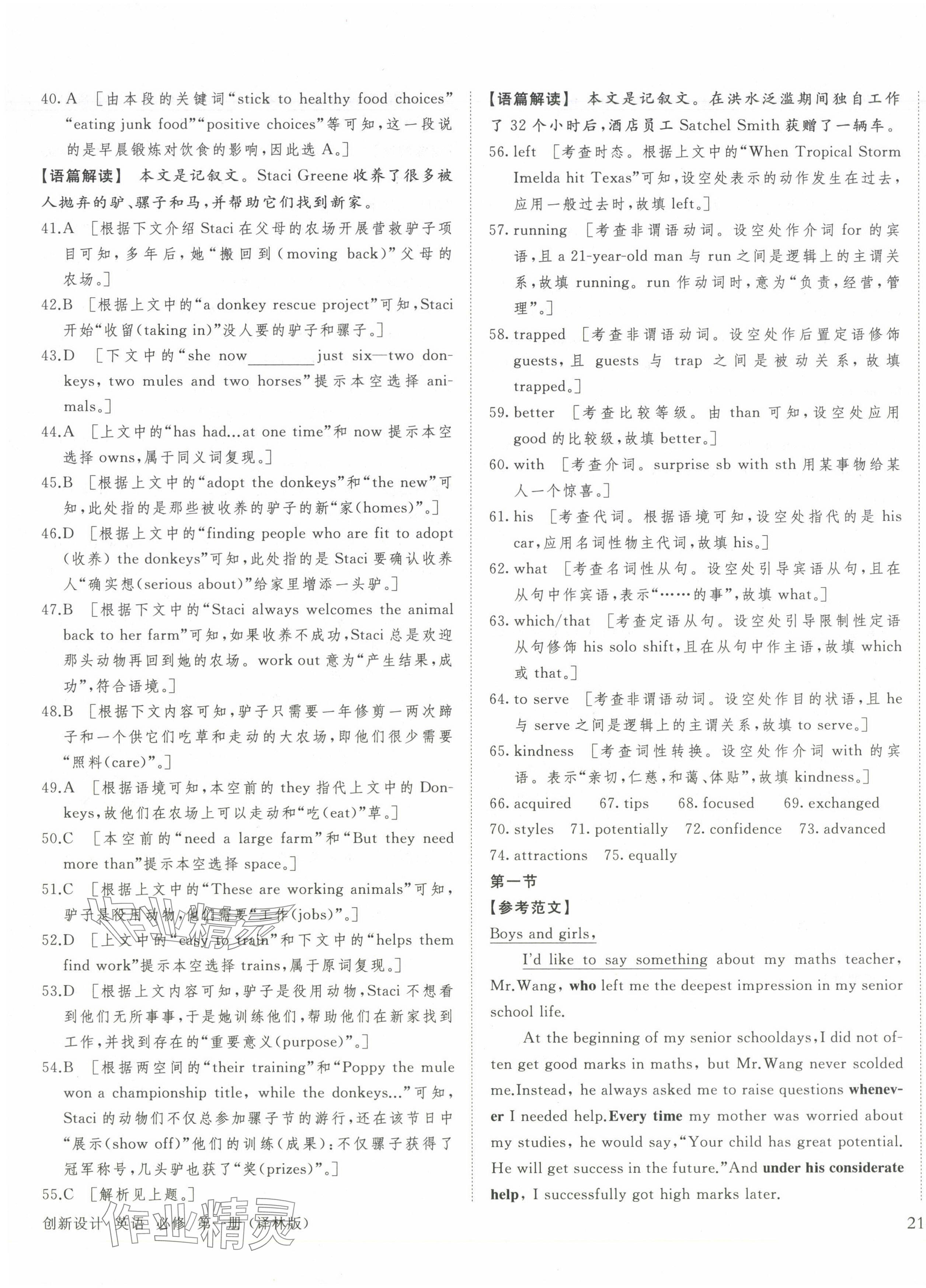注:目前有些书本章节名称可能整理的还不是很完善,但都是按照顺序排列的,请同学们按照顺序仔细查找。练习册 2024年创新设计高中英语必修第一册译林版 答案主要是用来给同学们做完题方便对答案用的,请勿直接抄袭。