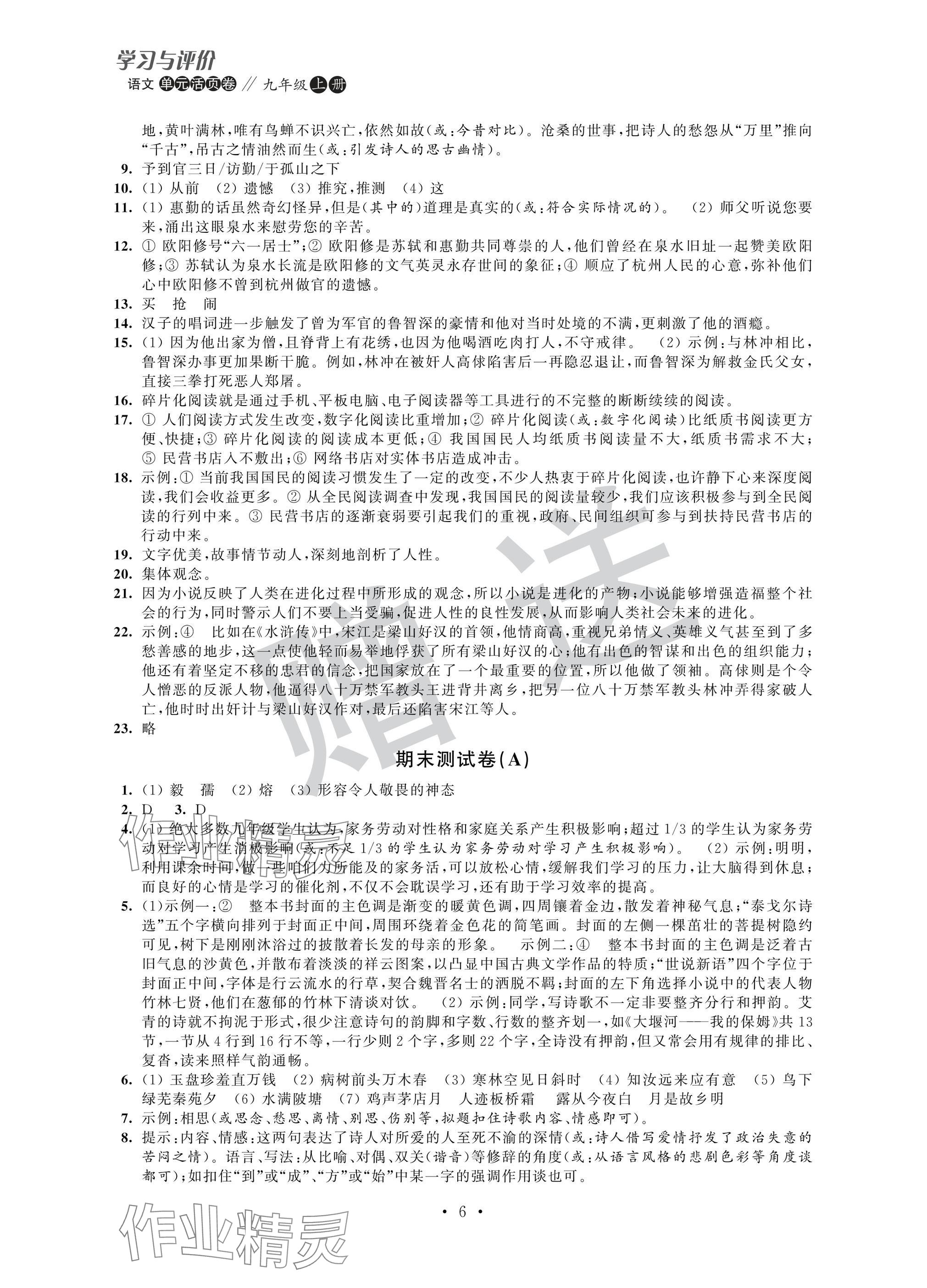 注:目前有些书本章节名称可能整理的还不是很完善,但都是按照顺序排列的,请同学们按照顺序仔细查找。练习册 2024年学习与评价初中语文活页卷九年级上册人教版 答案主要是用来给同学们做完题方便对答案用的,请勿直接抄袭。