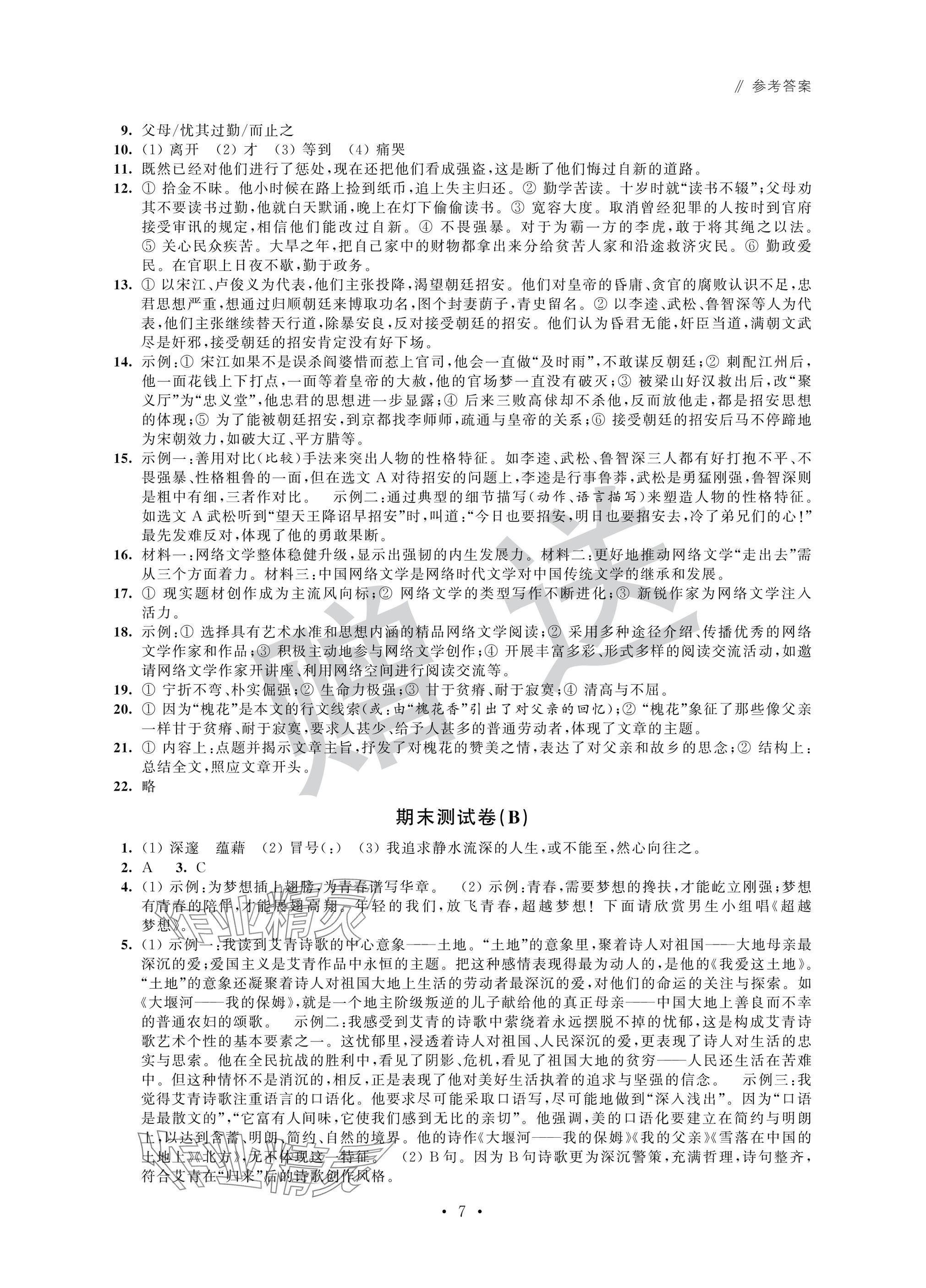 注:目前有些书本章节名称可能整理的还不是很完善,但都是按照顺序排列的,请同学们按照顺序仔细查找。练习册 2024年学习与评价初中语文活页卷九年级上册人教版 答案主要是用来给同学们做完题方便对答案用的,请勿直接抄袭。