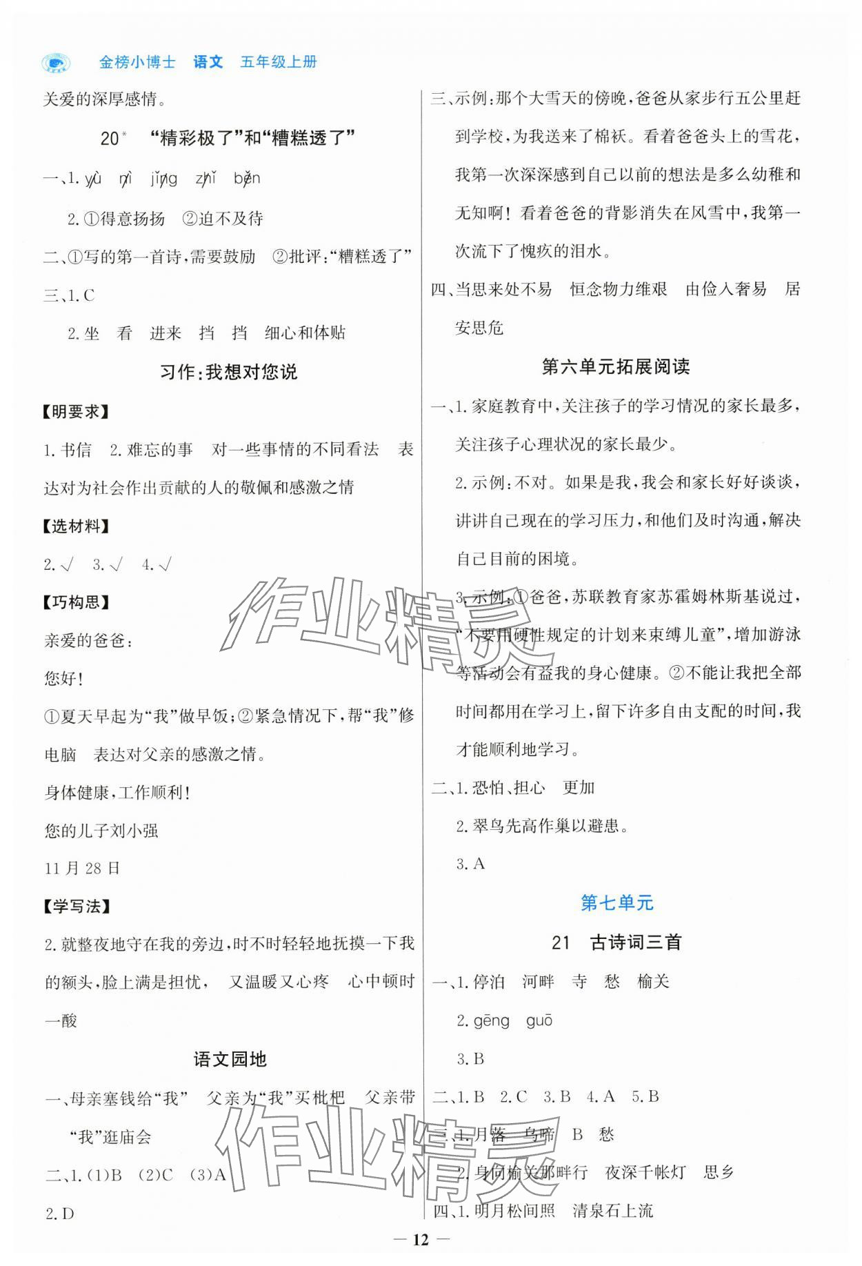 《2024年世纪金榜金榜小博士五年级语文上册人教版》