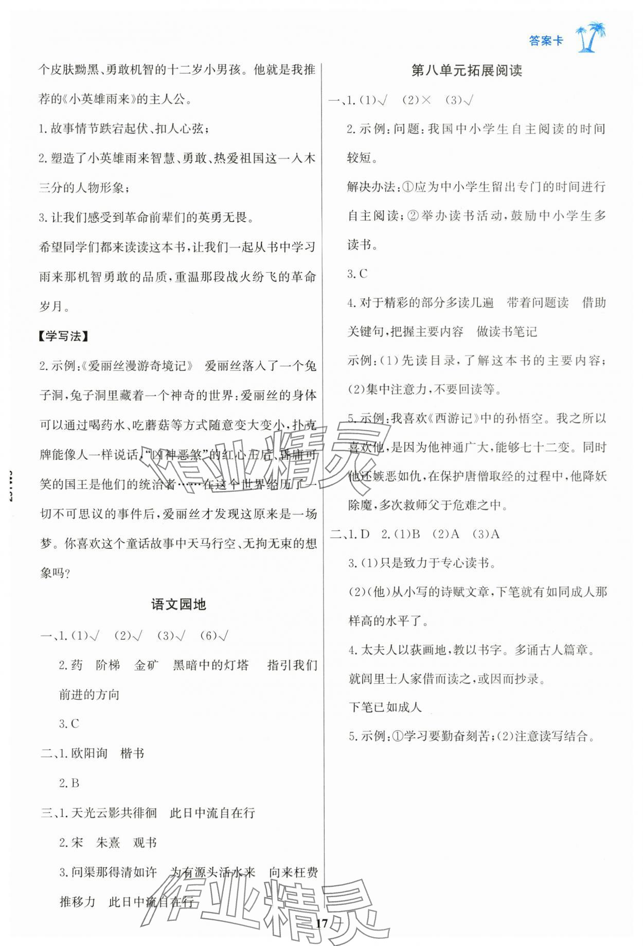 注:目前有些书本章节名称可能整理的还不是很完善,但都是按照顺序排列的,请同学们按照顺序仔细查找。练习册 2024年世纪金榜金榜小博士五年级语文上册人教版 答案主要是用来给同学们做完题方便对答案用的,请勿直接抄袭。