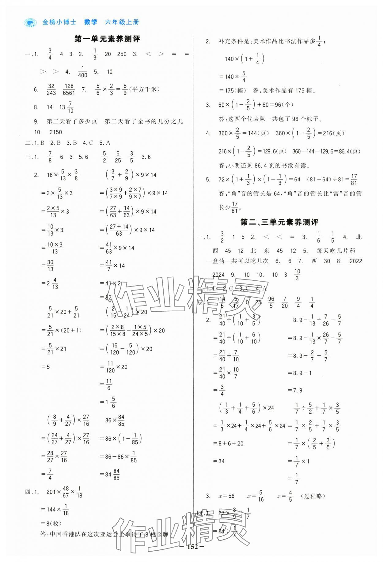2024年世纪金榜金榜小博士六年级数学上册人教版