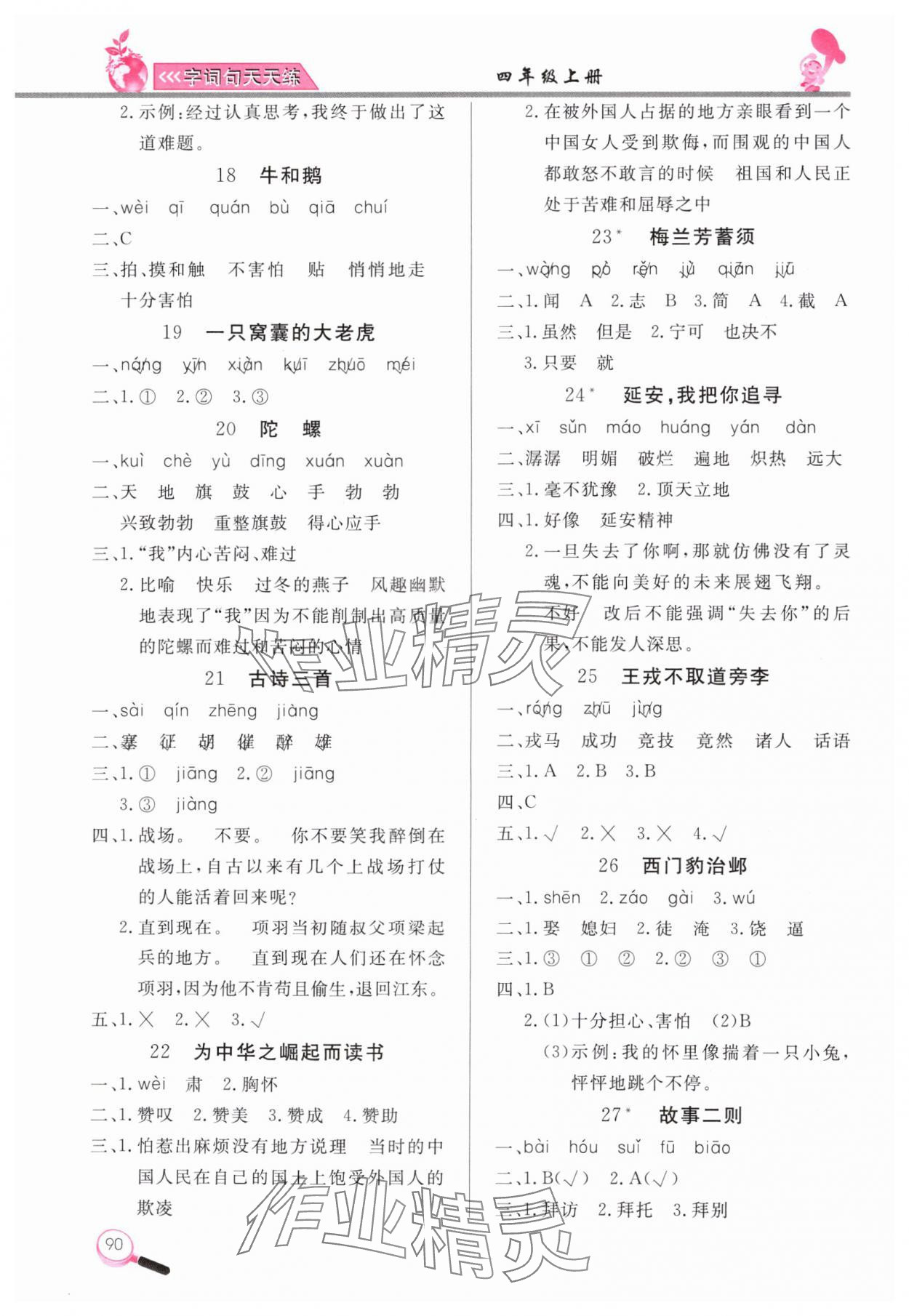 注:目前有些书本章节名称可能整理的还不是很完善,但都是按照顺序排列的,请同学们按照顺序仔细查找。练习册 2024年字词句天天练四年级上册人教版 答案主要是用来给同学们做完题方便对答案用的,请勿直接抄袭。