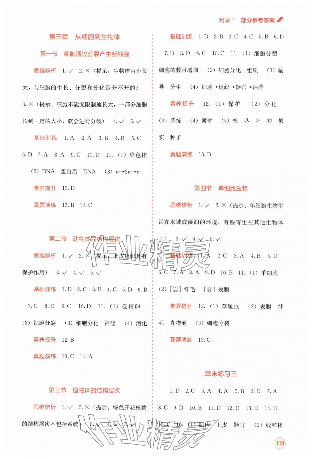 注:目前有些书本章节名称可能整理的还不是很完善,但都是按照顺序排列的,请同学们按照顺序仔细查找。练习册 2024年自主学习能力测评七年级生物上册人教版 答案主要是用来给同学们做完题方便对答案用的,请勿直接抄袭。
