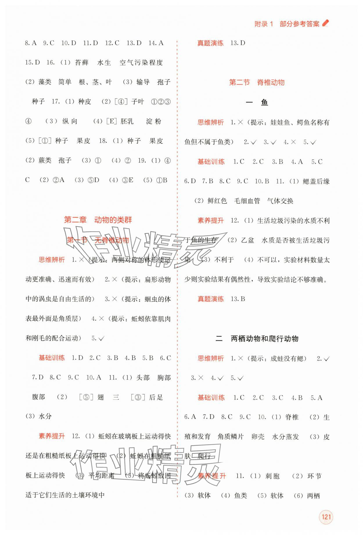 注:目前有些书本章节名称可能整理的还不是很完善,但都是按照顺序排列的,请同学们按照顺序仔细查找。练习册 2024年自主学习能力测评七年级生物上册人教版 答案主要是用来给同学们做完题方便对答案用的,请勿直接抄袭。