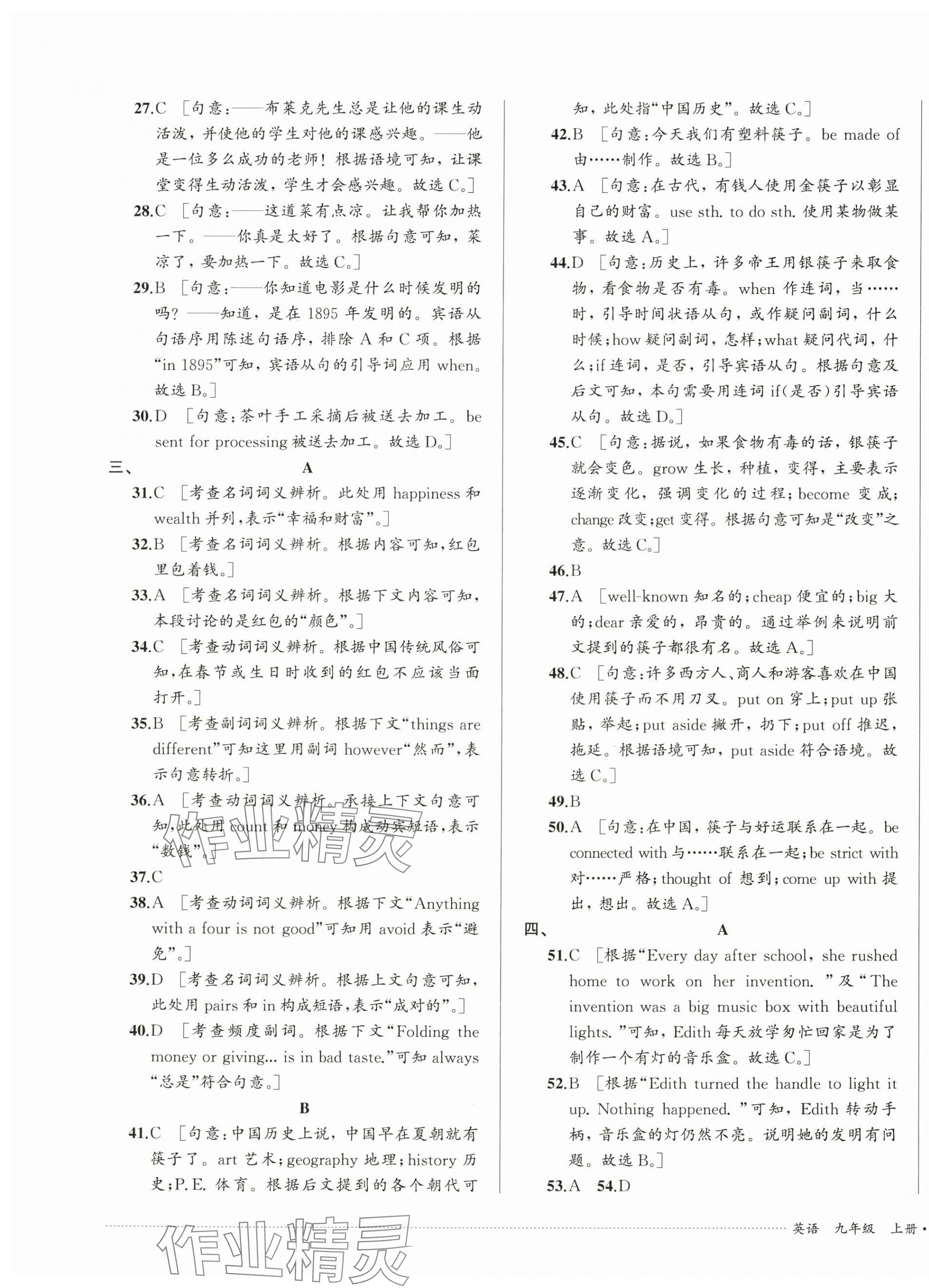 注:目前有些书本章节名称可能整理的还不是很完善,但都是按照顺序排列的,请同学们按照顺序仔细查找。练习册 2024年单元过关与拓展训练九年级英语上册人教版 答案主要是用来给同学们做完题方便对答案用的,请勿直接抄袭。