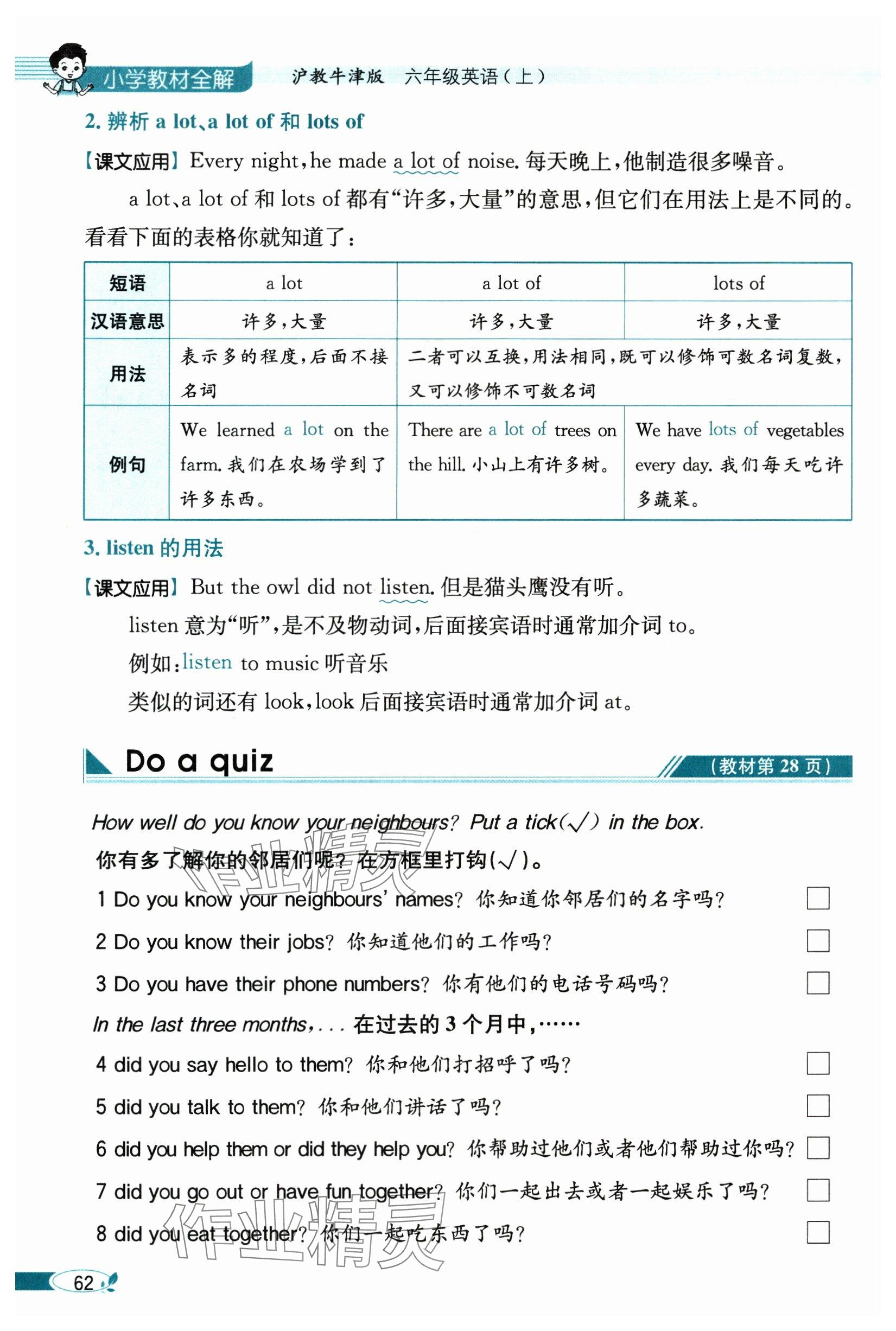 注:目前有些书本章节名称可能整理的还不是很完善,但都是按照顺序排列的,请同学们按照顺序仔细查找。练习册 2024年教材课本六年级英语上册沪教版 答案主要是用来给同学们做完题方便对答案用的,请勿直接抄袭。