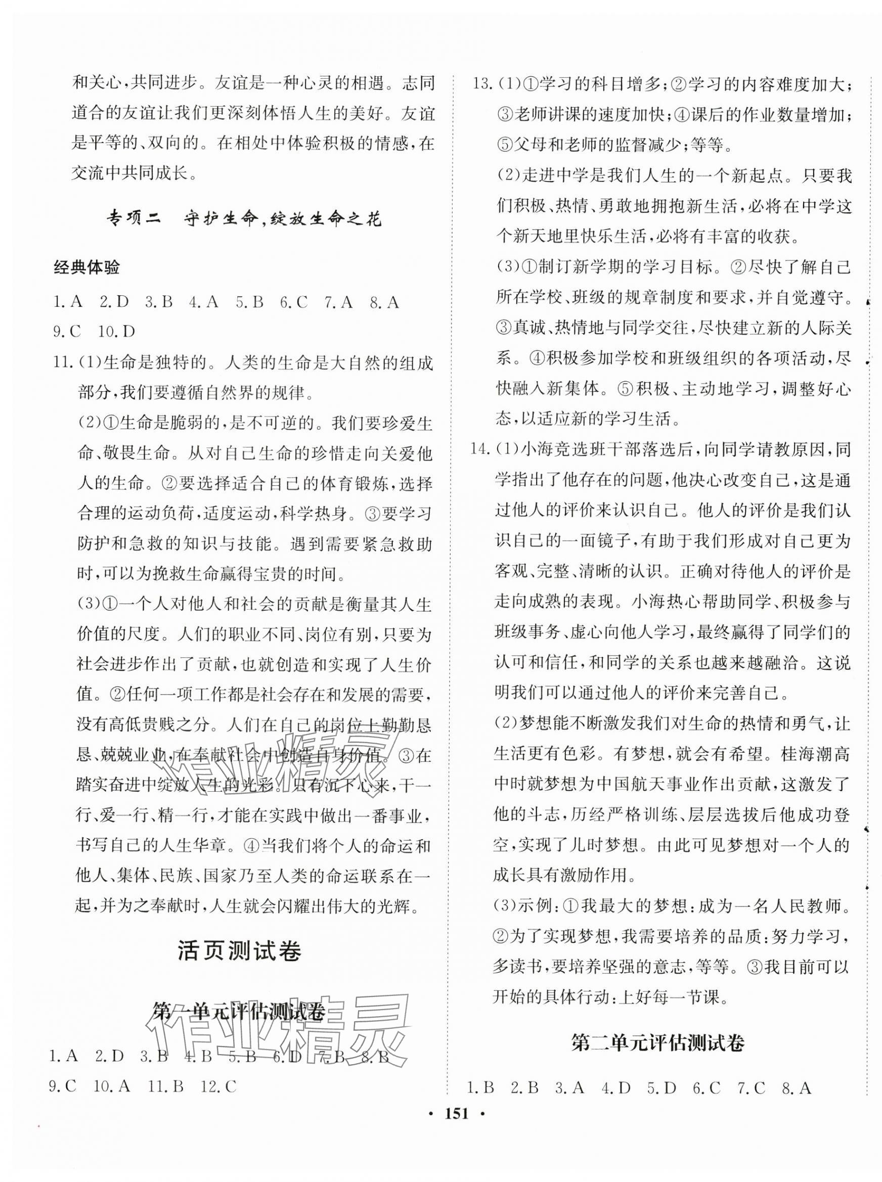 注:目前有些书本章节名称可能整理的还不是很完善,但都是按照顺序排列的,请同学们按照顺序仔细查找。练习册 2024年同步训练河北人民出版社七年级道德与法治上册人教版 答案主要是用来给同学们做完题方便对答案用的,请勿直接抄袭。
