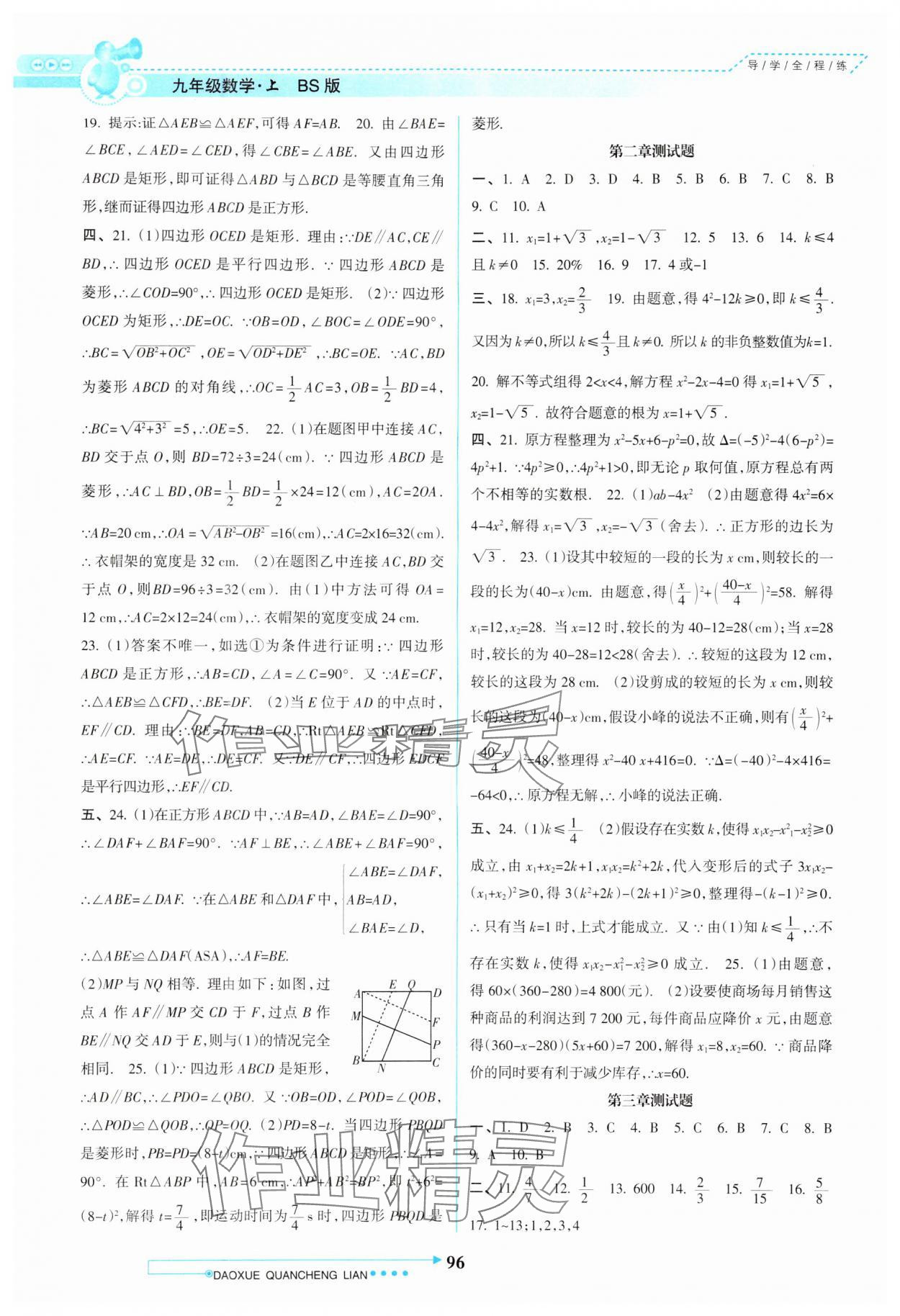 注:目前有些书本章节名称可能整理的还不是很完善,但都是按照顺序排列的,请同学们按照顺序仔细查找。练习册 2024年导学全程练创优训练九年级数学上册北师大版 答案主要是用来给同学们做完题方便对答案用的,请勿直接抄袭。