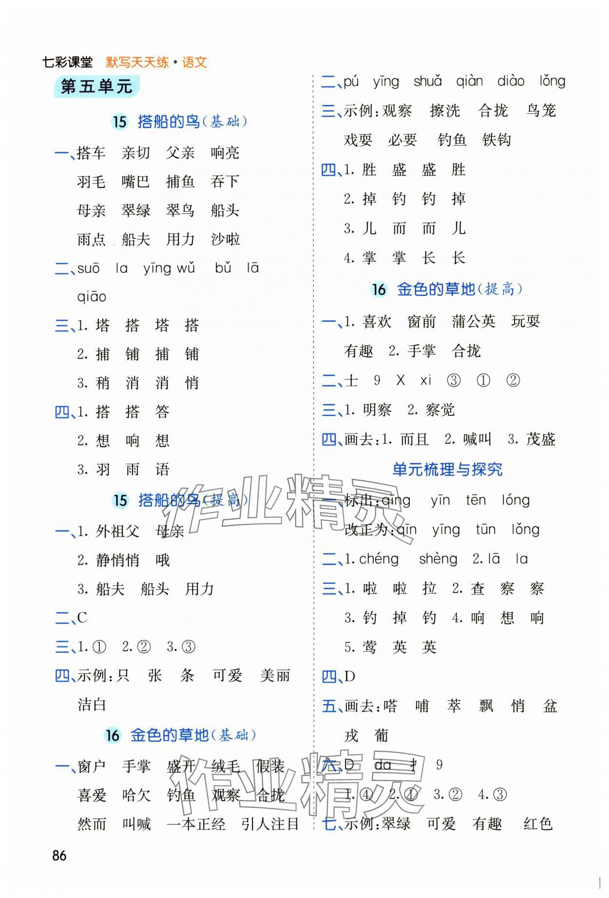 注:目前有些书本章节名称可能整理的还不是很完善,但都是按照顺序排列的,请同学们按照顺序仔细查找。练习册 2024年七彩课堂默写天天练三年级语文上册人教版 答案主要是用来给同学们做完题方便对答案用的,请勿直接抄袭。
