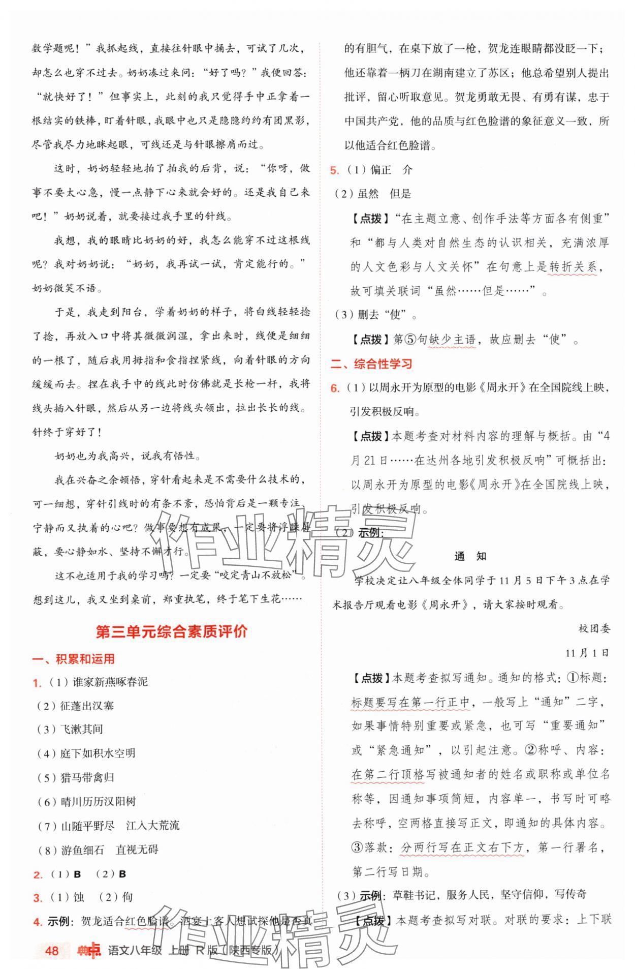 注:目前有些书本章节名称可能整理的还不是很完善,但都是按照顺序排列的,请同学们按照顺序仔细查找。练习册 2024年综合应用创新题典中点八年级语文上册人教版陕西专版 答案主要是用来给同学们做完题方便对答案用的,请勿直接抄袭。
