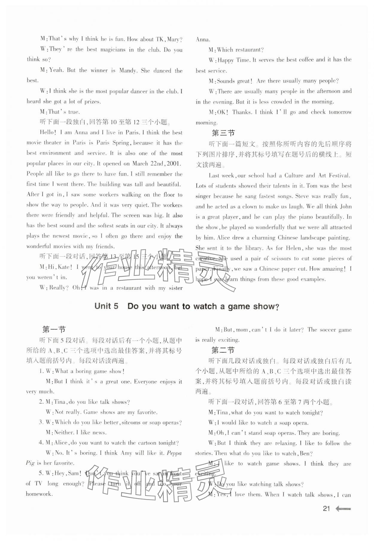 注:目前有些书本章节名称可能整理的还不是很完善,但都是按照顺序排列的,请同学们按照顺序仔细查找。练习册 2024年节节高大象出版社八年级英语上册人教版 答案主要是用来给同学们做完题方便对答案用的,请勿直接抄袭。