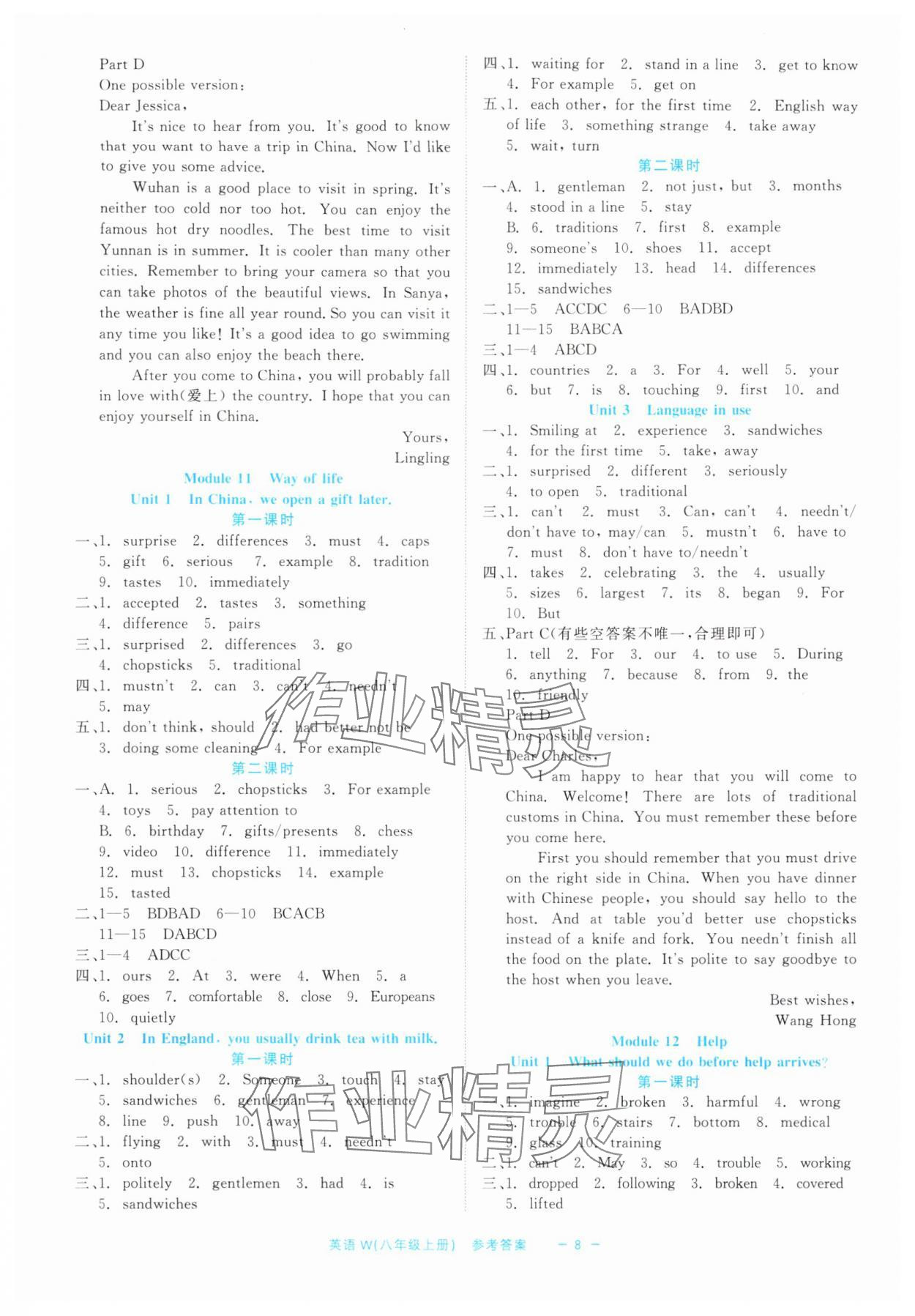 注:目前有些书本章节名称可能整理的还不是很完善,但都是按照顺序排列的,请同学们按照顺序仔细查找。练习册 2024年精彩练习就练这一本八年级英语上册外研版评议教辅 答案主要是用来给同学们做完题方便对答案用的,请勿直接抄袭。