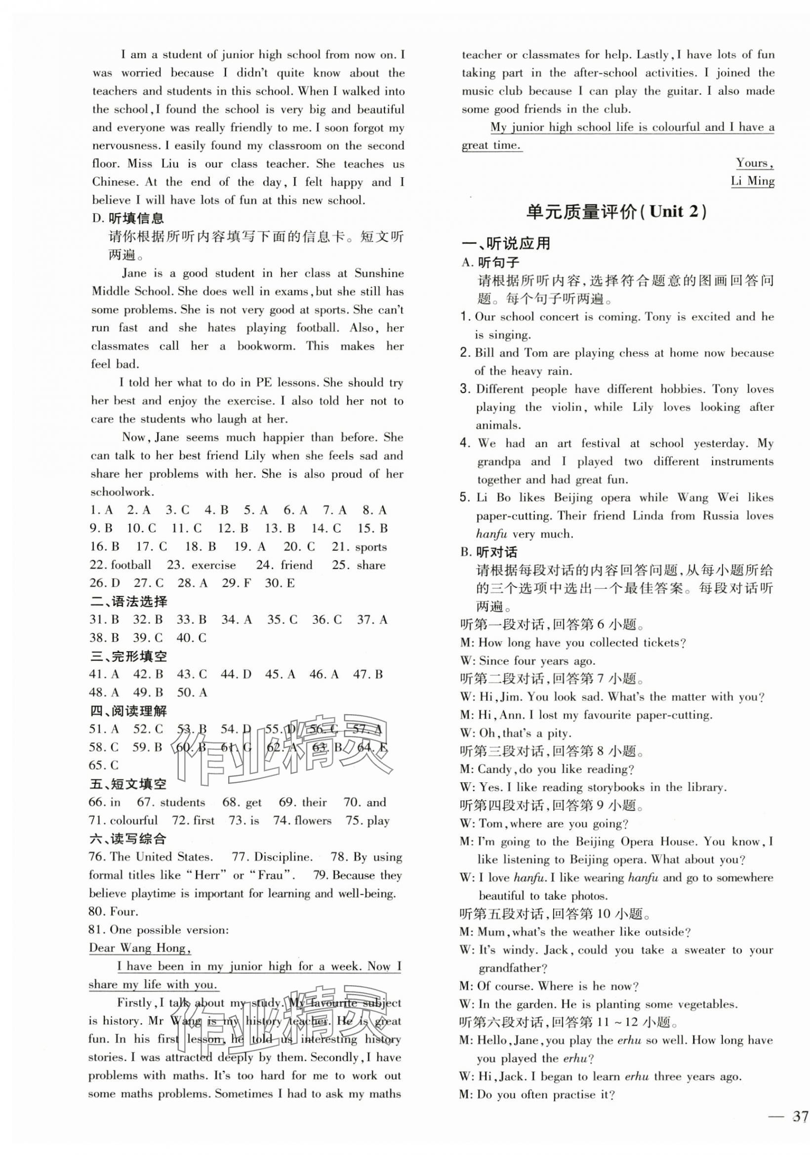 相关练习册答案