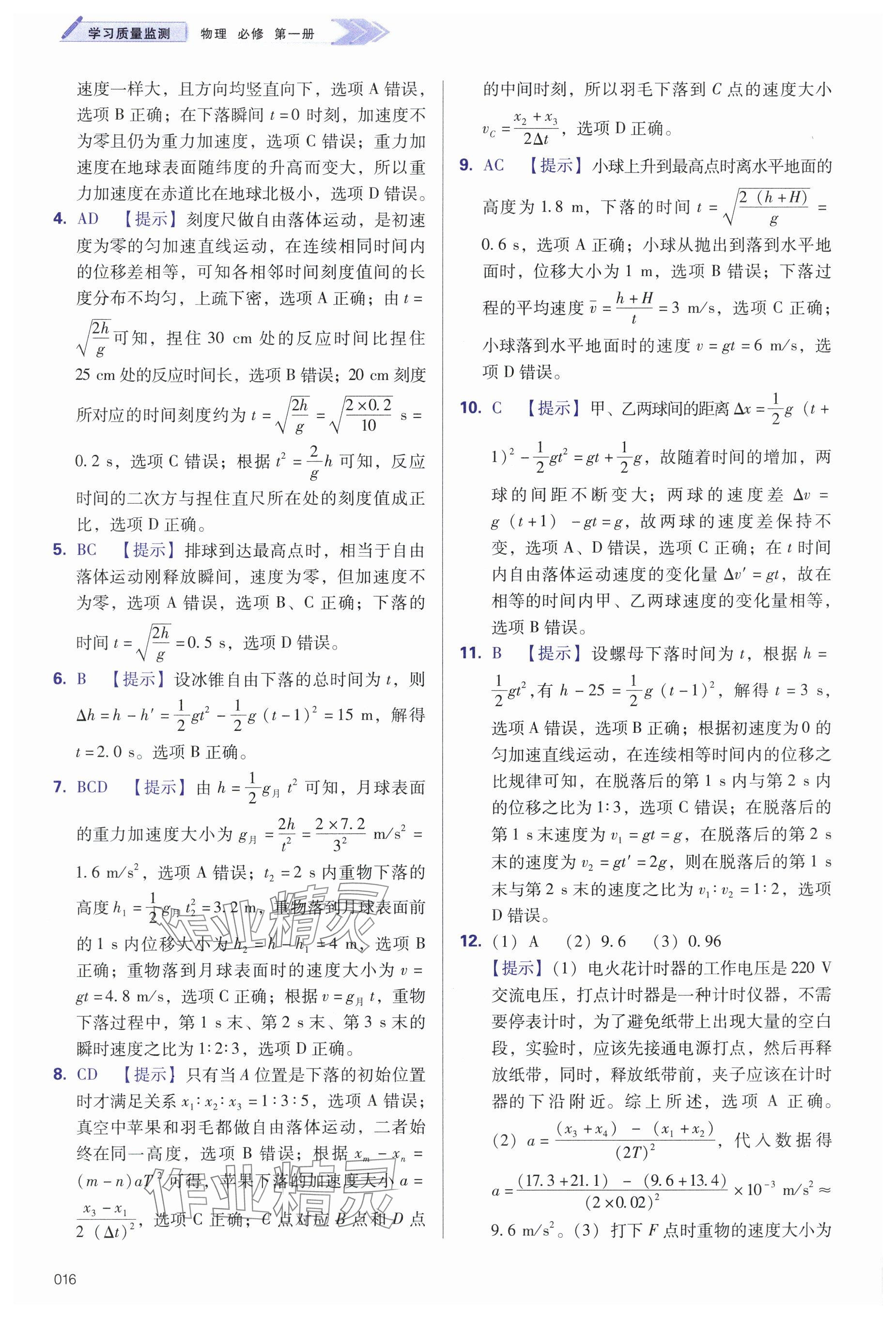 注:目前有些书本章节名称可能整理的还不是很完善,但都是按照顺序排列的,请同学们按照顺序仔细查找。练习册 2024年学习质量监测高中物理必修第一册人教版 答案主要是用来给同学们做完题方便对答案用的,请勿直接抄袭。