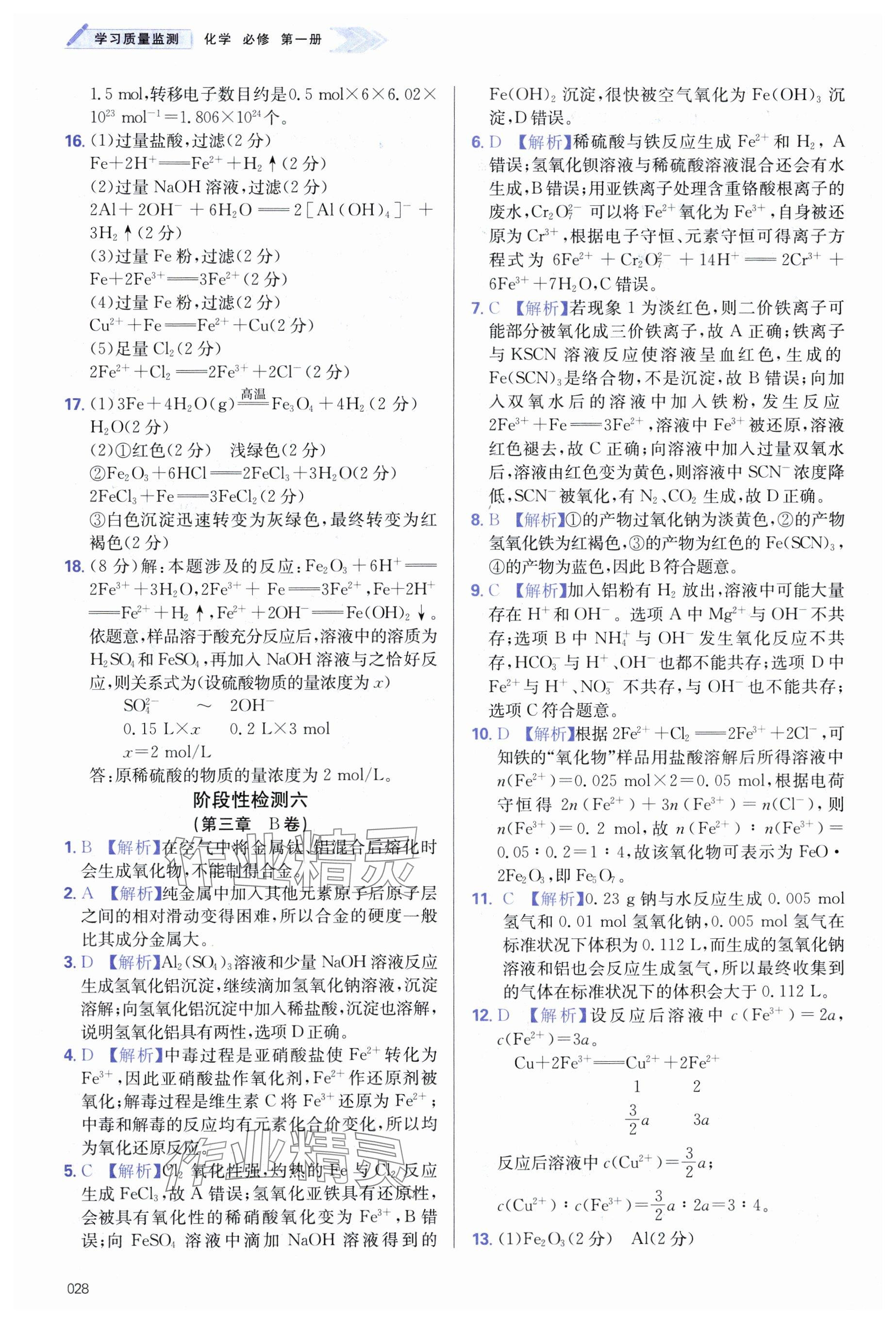 注:目前有些书本章节名称可能整理的还不是很完善,但都是按照顺序排列的,请同学们按照顺序仔细查找。练习册 2024年学习质量监测高中化学必修第一册人教版 答案主要是用来给同学们做完题方便对答案用的,请勿直接抄袭。
