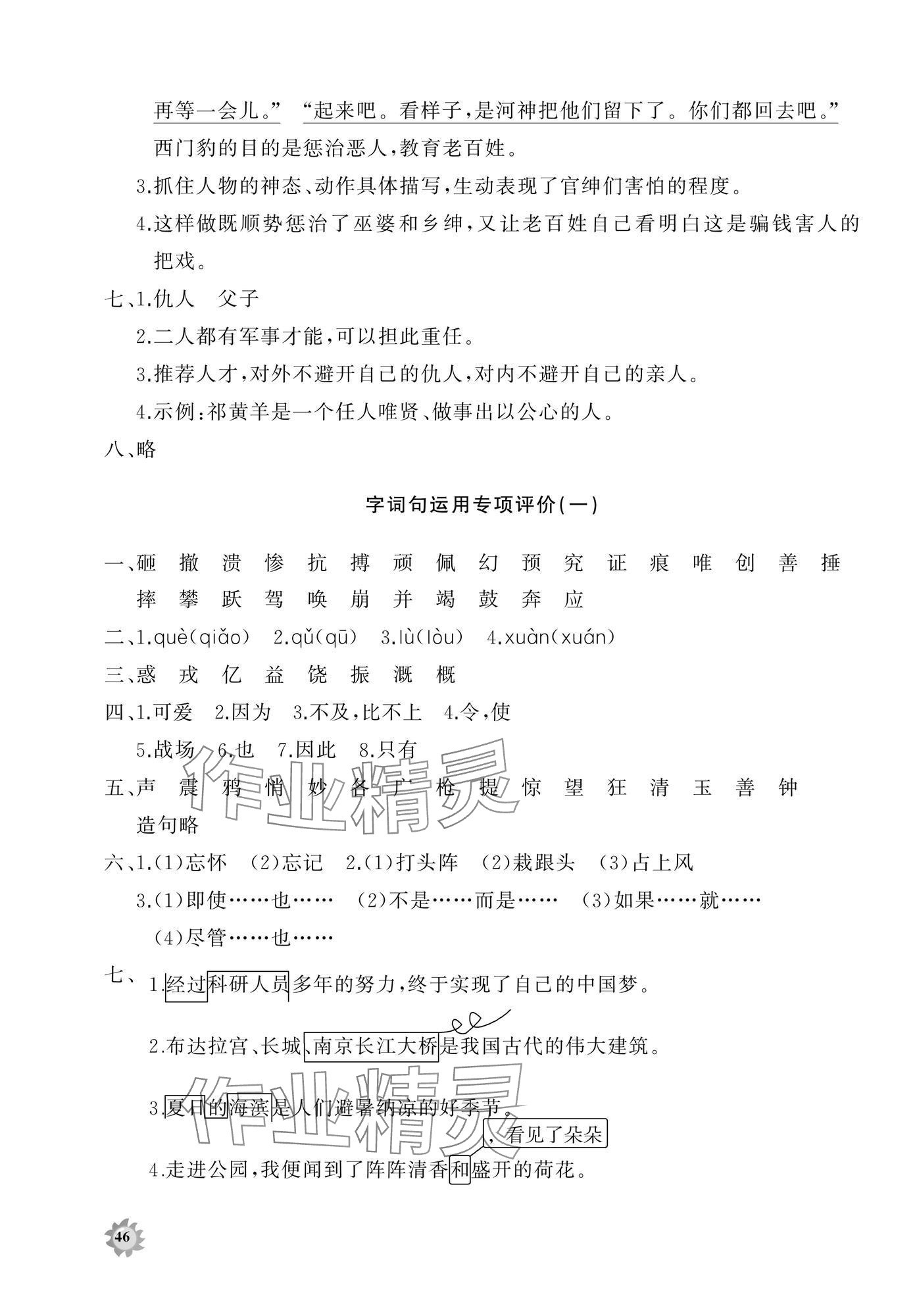 注:目前有些书本章节名称可能整理的还不是很完善,但都是按照顺序排列的,请同学们按照顺序仔细查找。练习册 2024年精练课堂分层作业四年级语文上册人教版 答案主要是用来给同学们做完题方便对答案用的,请勿直接抄袭。